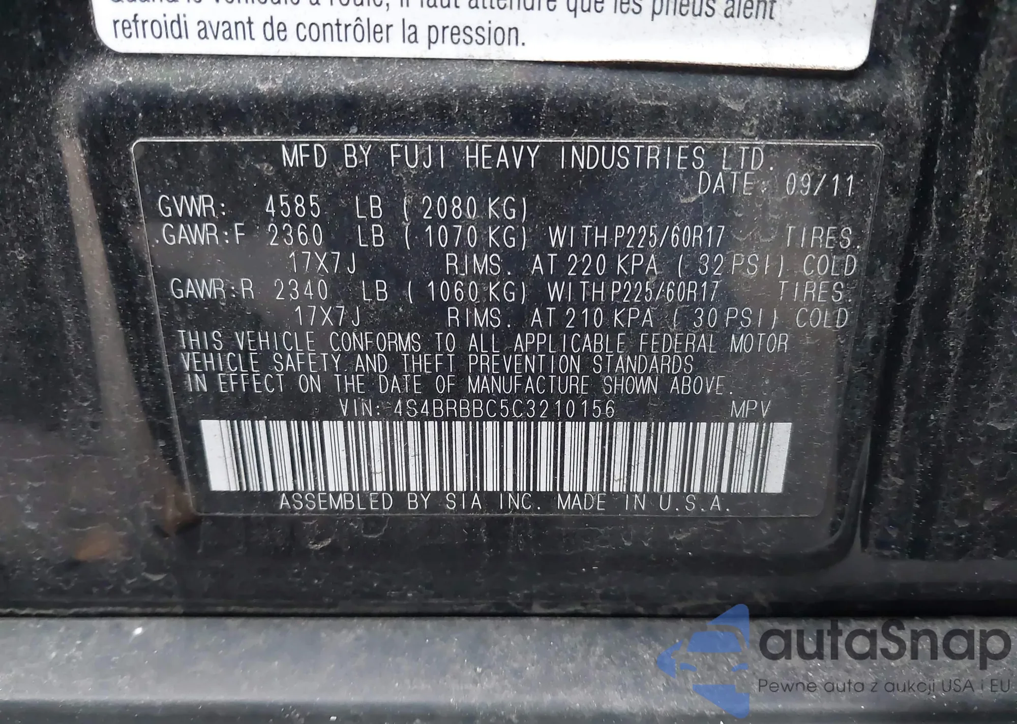 Samochód Subaru Outback 2012 (VIN 4S4BRBBC5C3210156) nie był wcześniej licytowany. Dokumenty są czyste, przebieg odpowiada lub jest niższy niż średnia rynku. Sprzedaje go firma ubezpieczeniowa – polecamy zakup. Dostawa do portu zajmie ok. 6–8 tygodni.