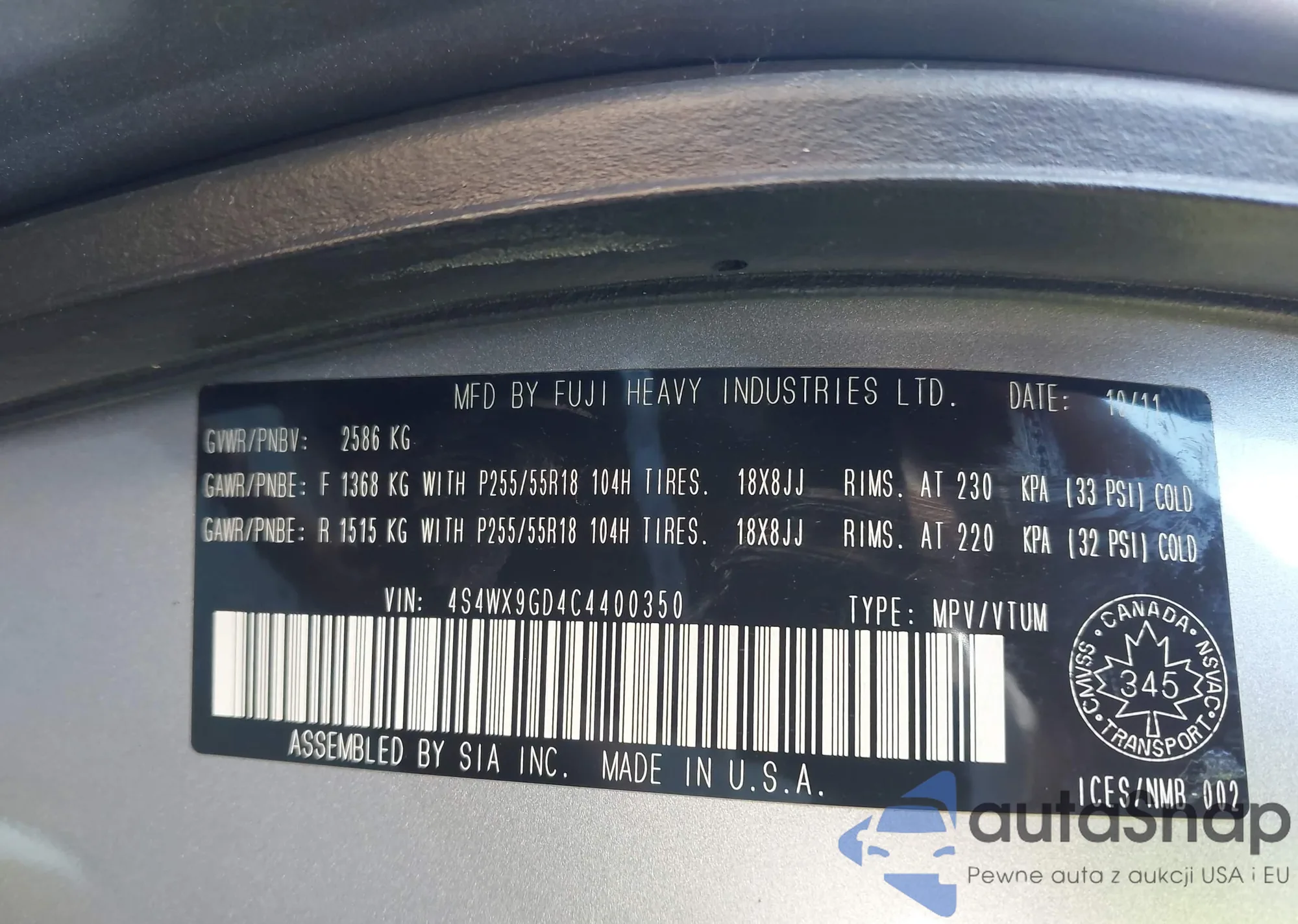 VIN: 4S4WX9GD4C4400350
