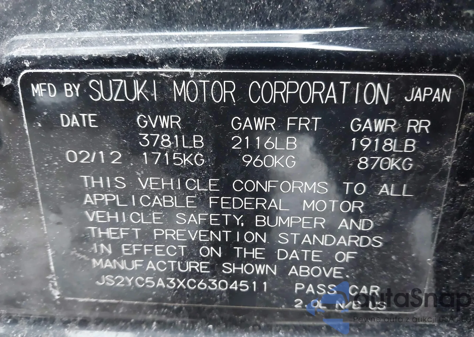VIN: JS2YC5A3XC6304511
