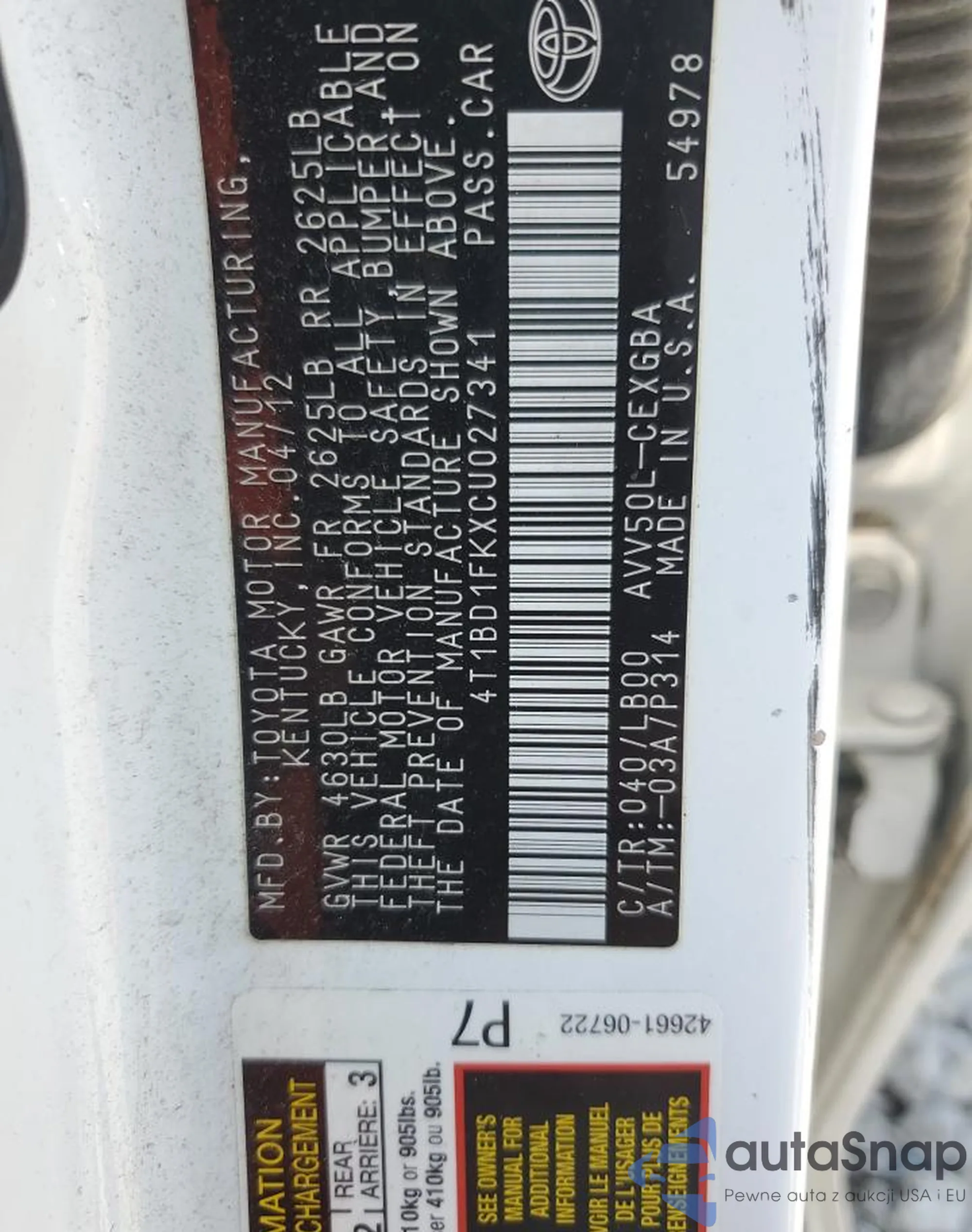 VIN: 4T1BD1FKXCU027341