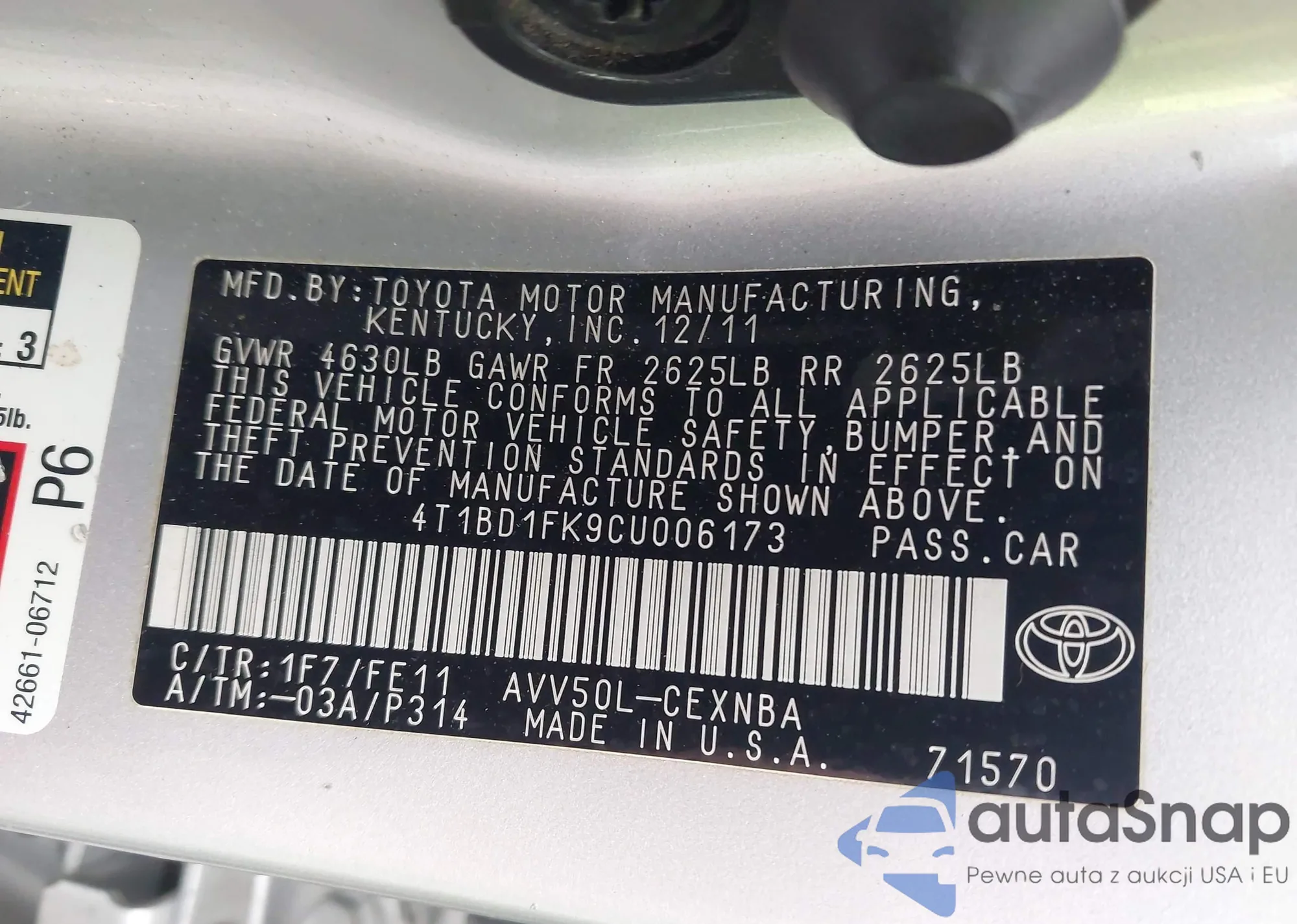 VIN: 4T1BD1FK9CU006173