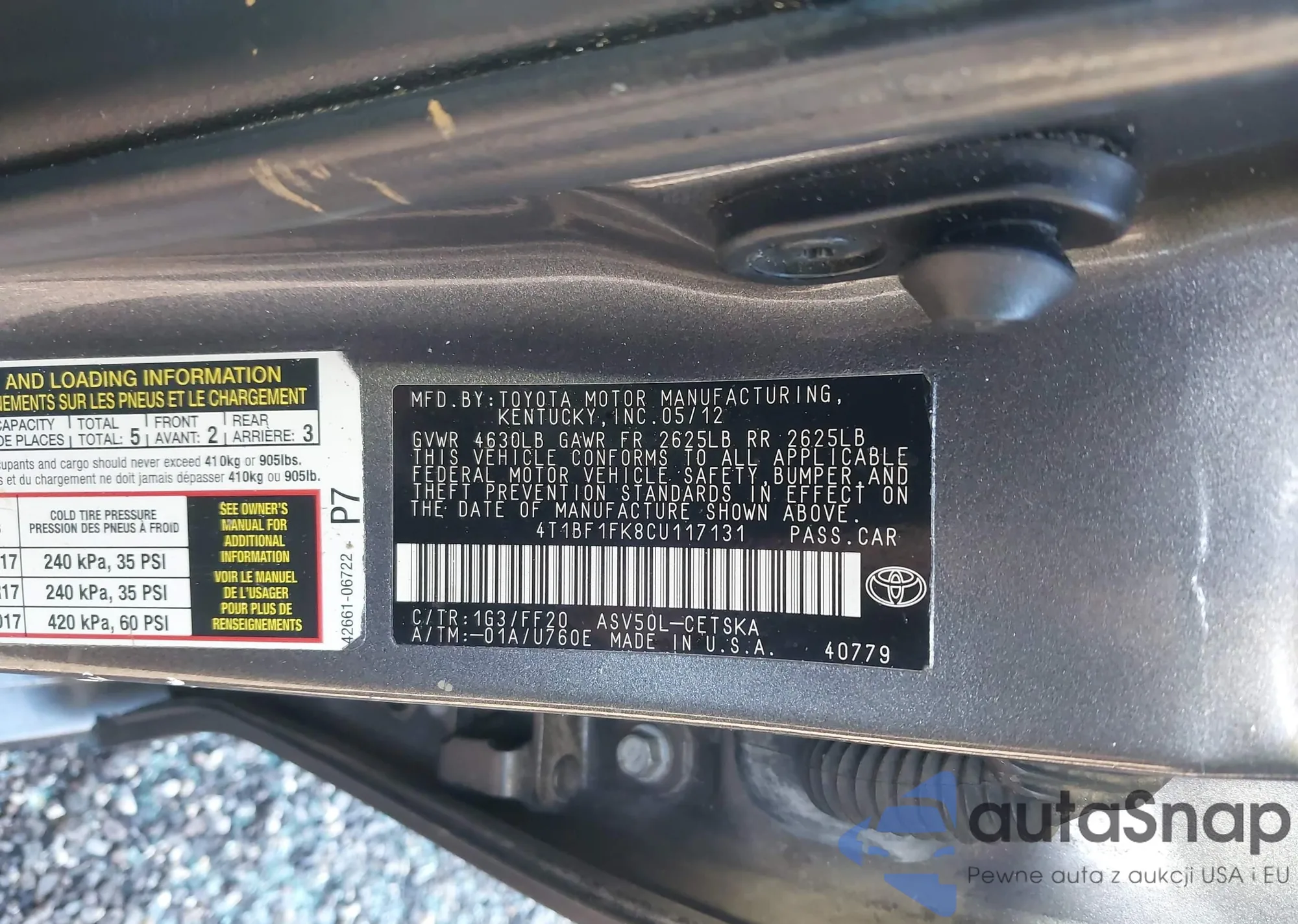 VIN: 4T1BF1FK8CU117131