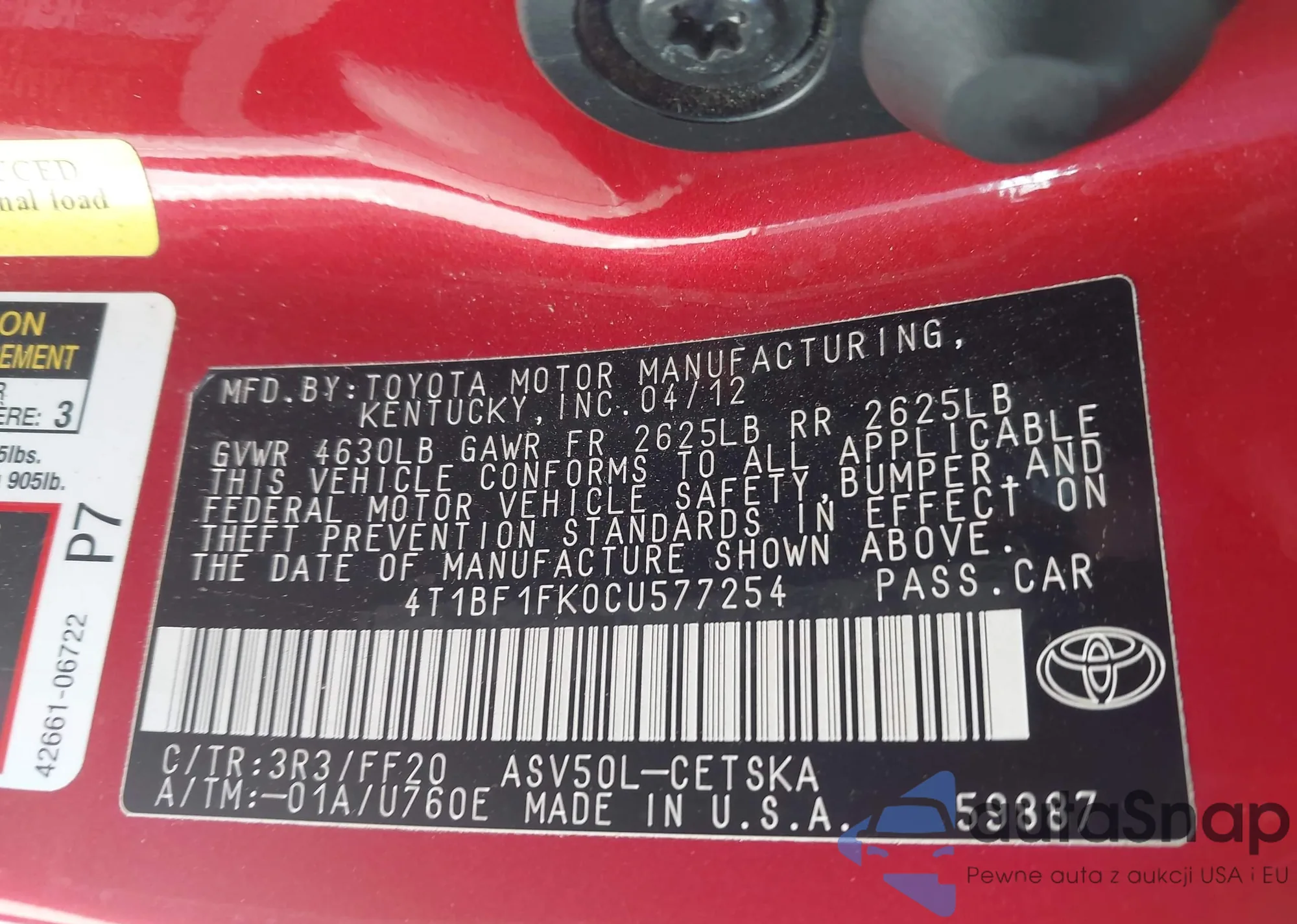 VIN: 4T1BF1FK0CU577254