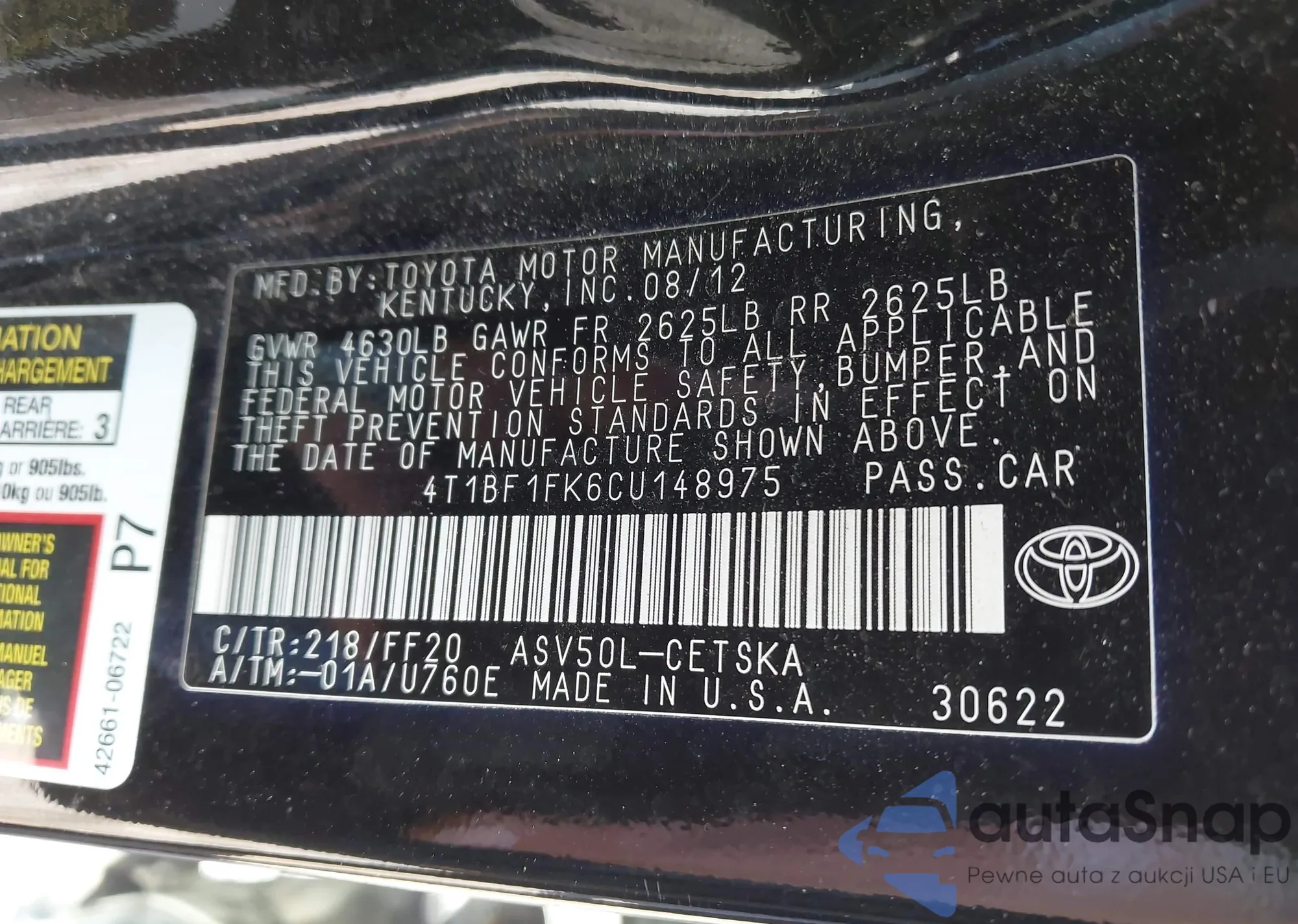 VIN: 4T1BF1FK6CU148975