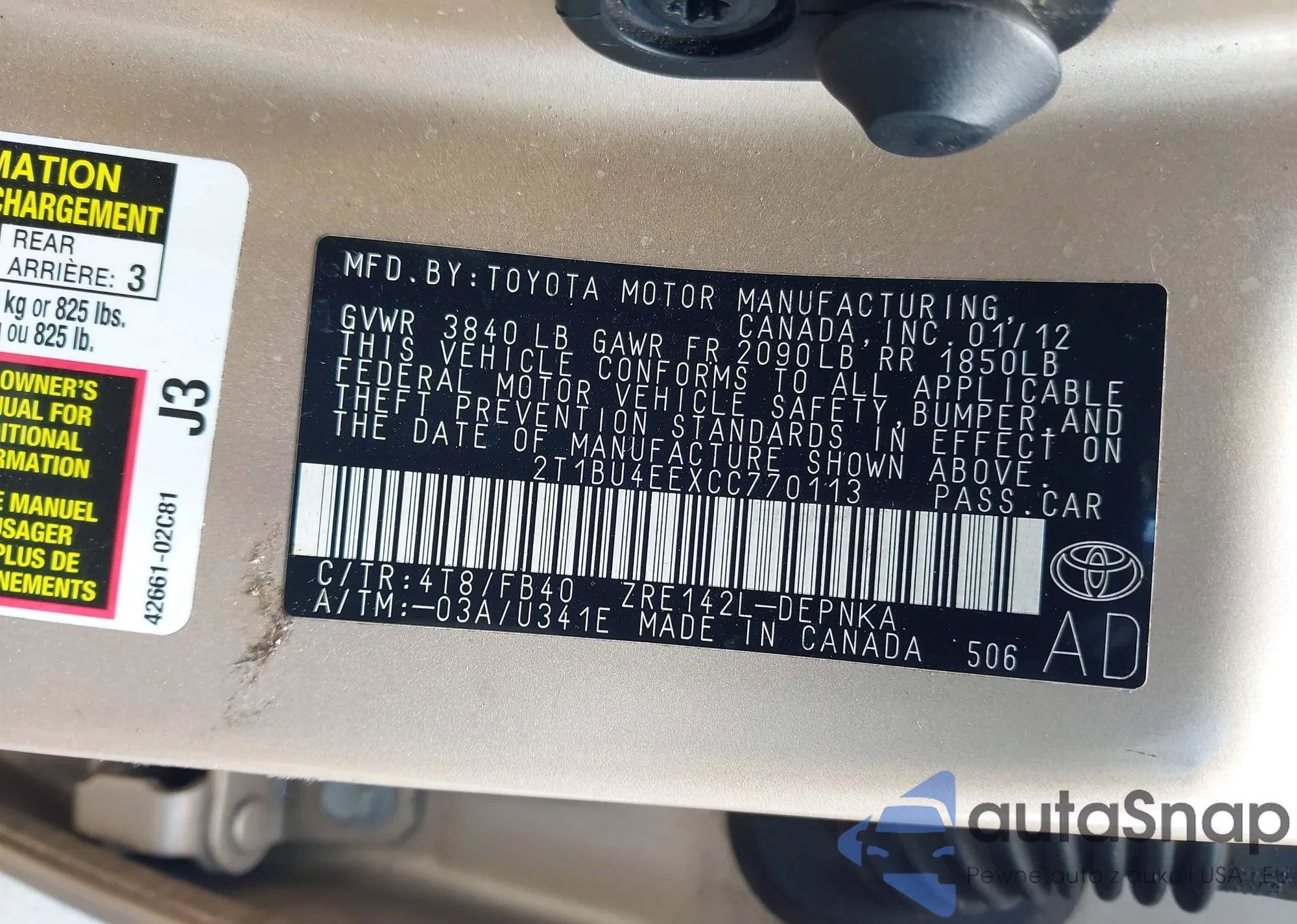 VIN: 2T1BU4EEXCC770113