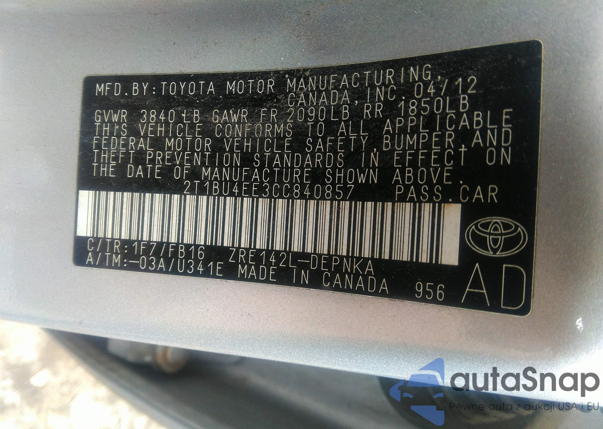 VIN: 2T1BU4EE3CC840857