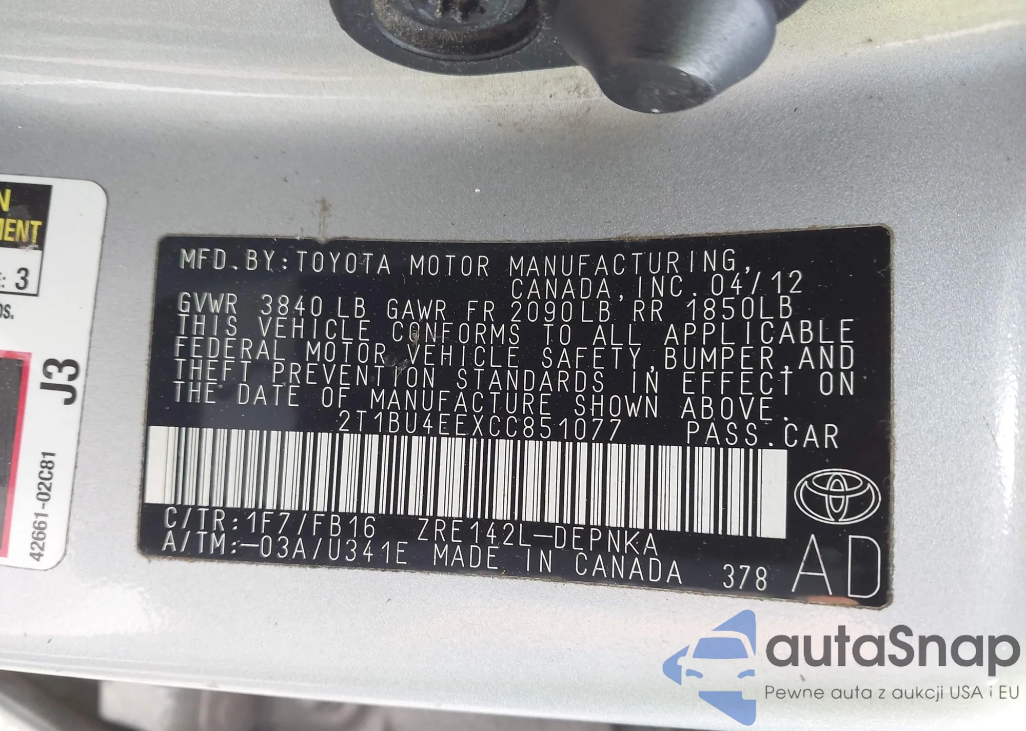 VIN: 2T1BU4EEXCC851077