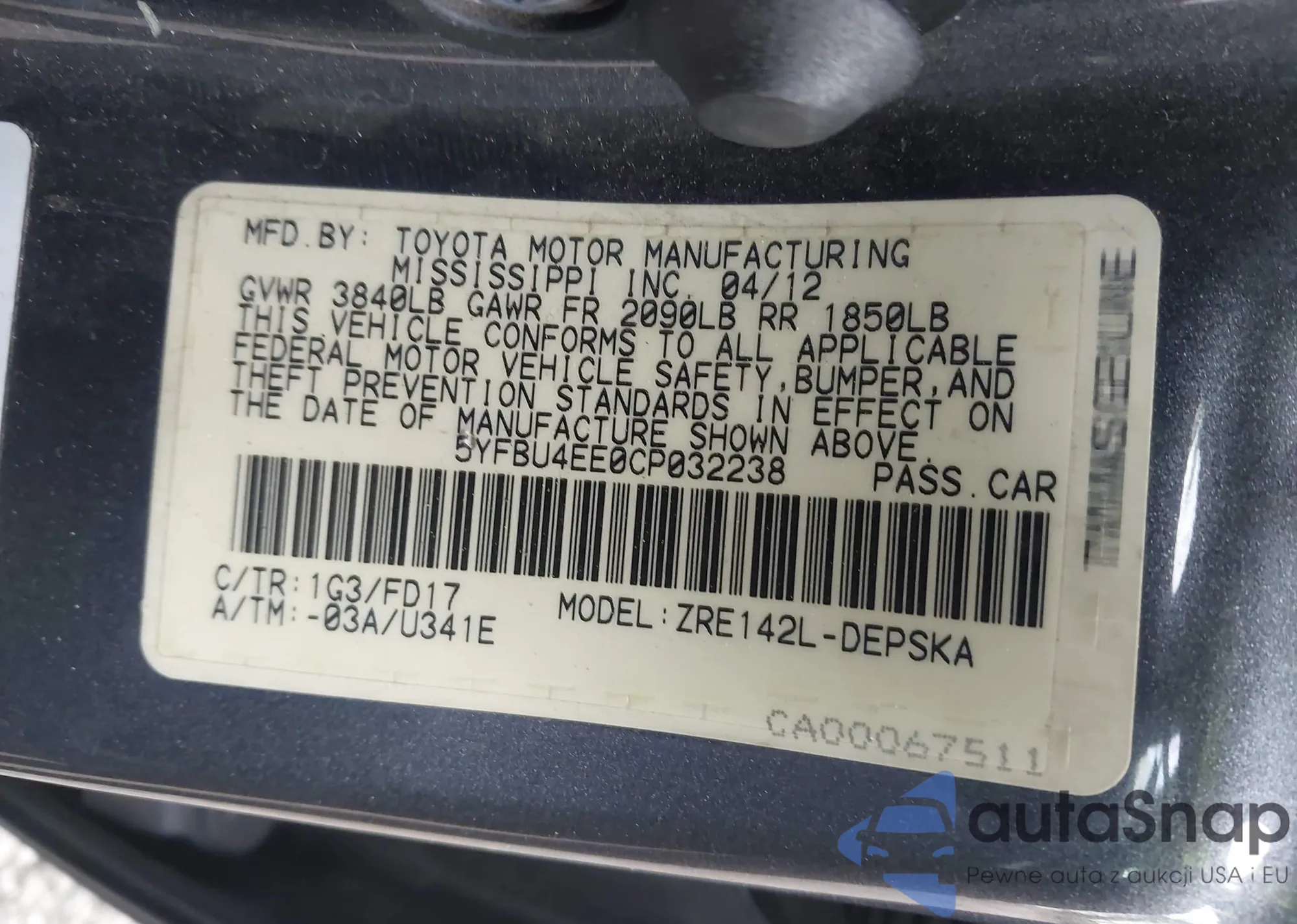 VIN: 5YFBU4EE0CP032238