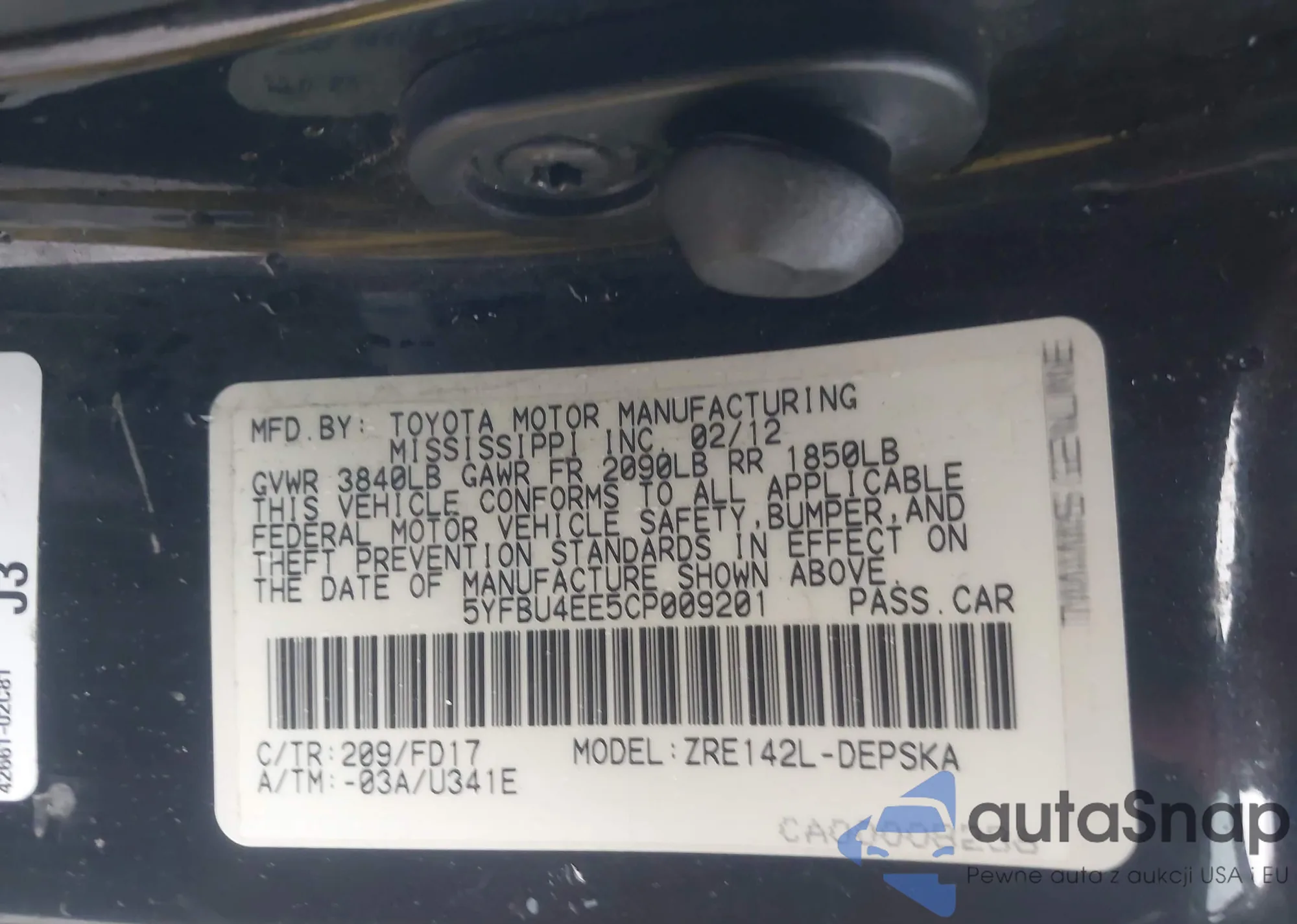 VIN: 5YFBU4EE5CP009201