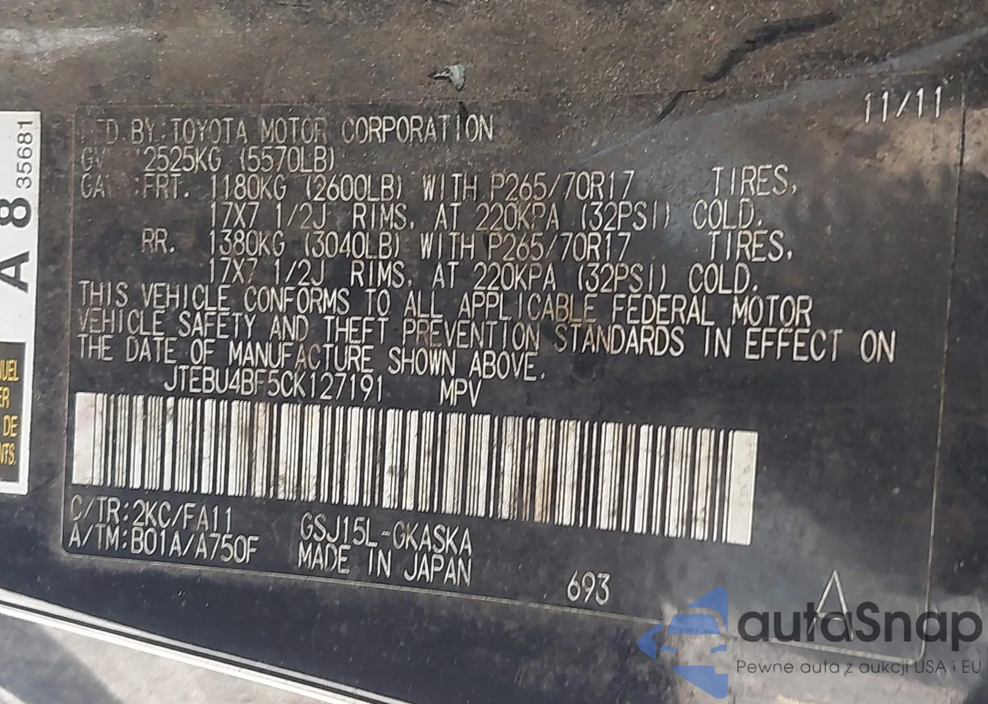 VIN: JTEBU4BF5CK127191