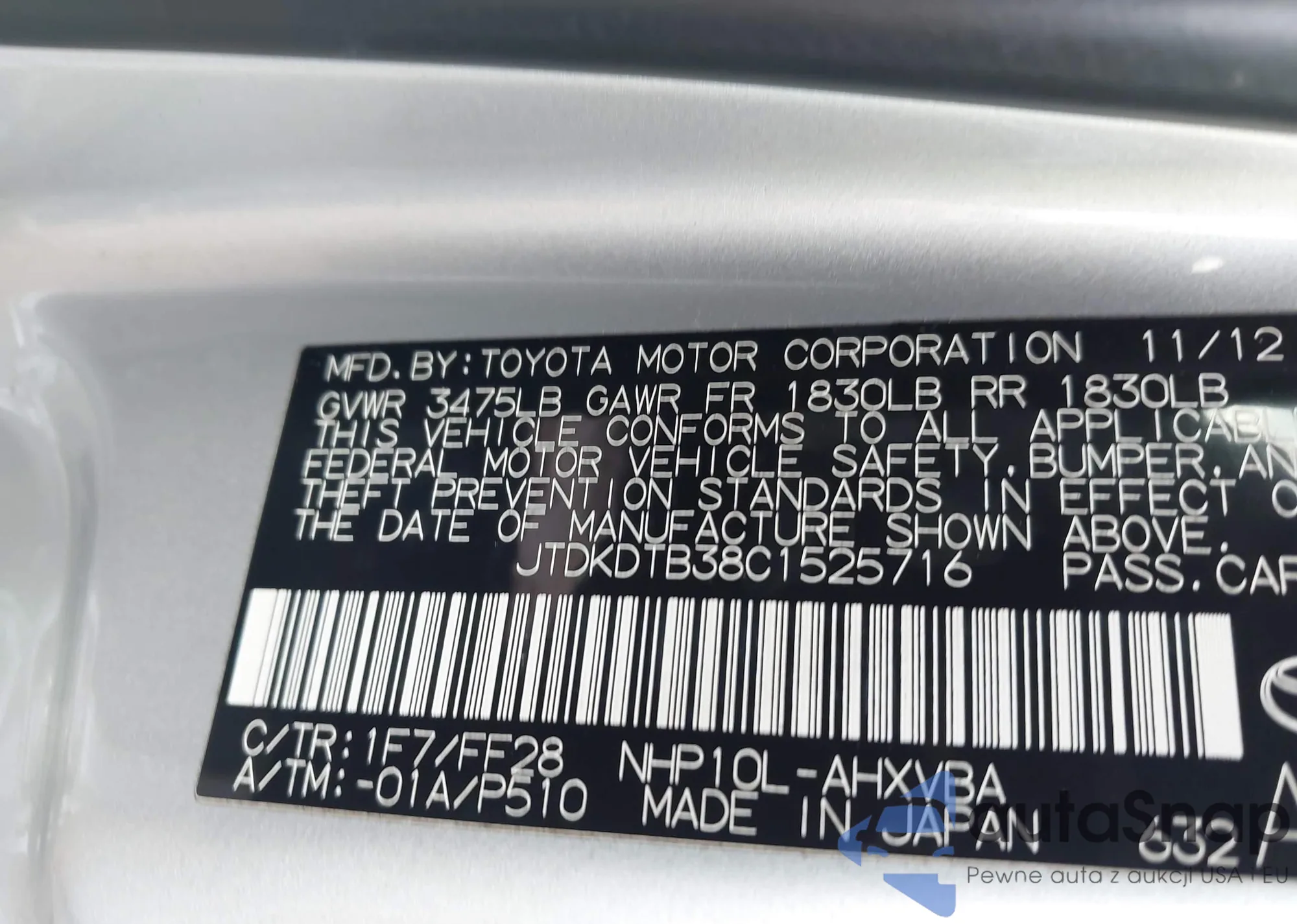 VIN: JTDKDTB38C1525716
