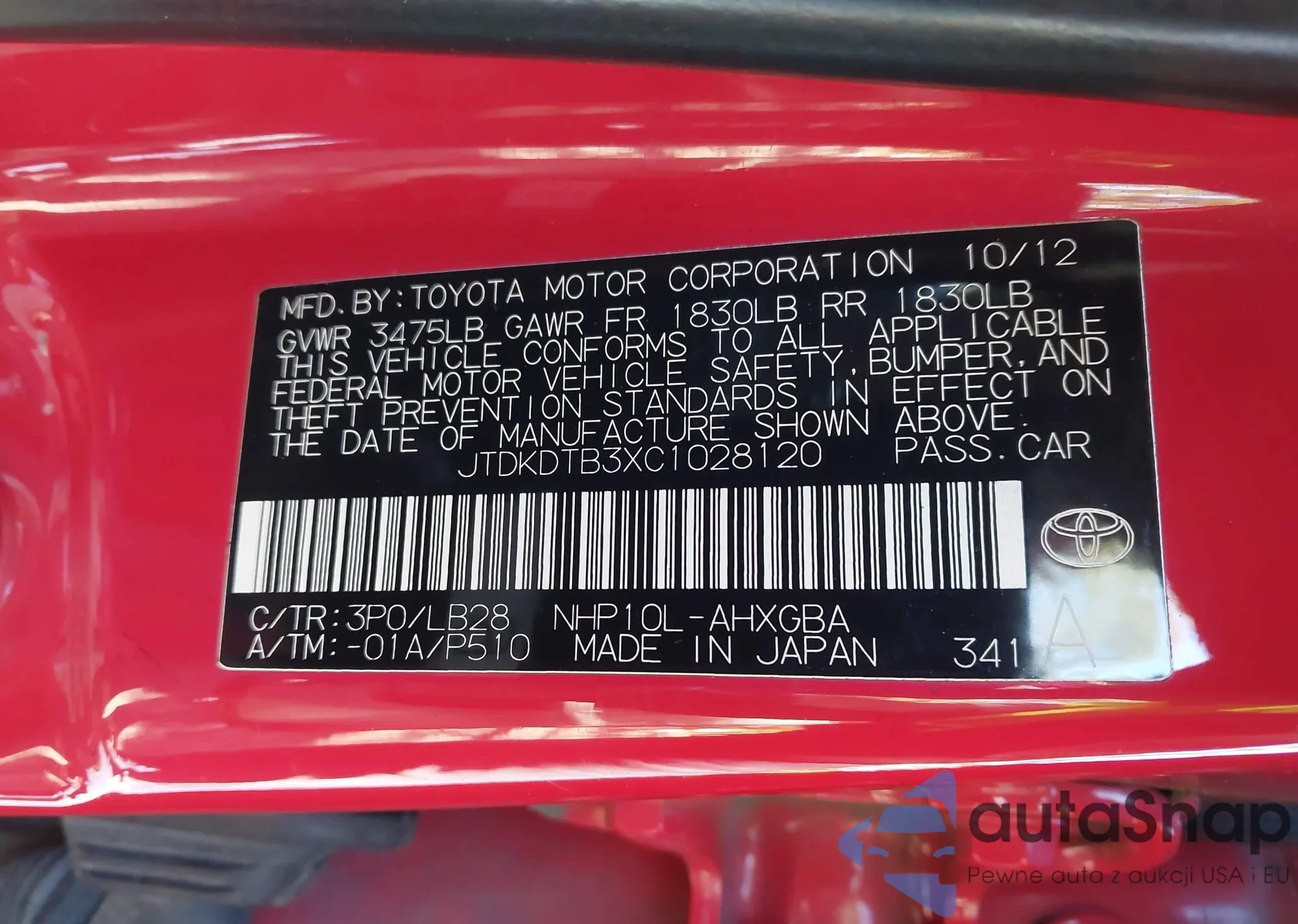 Samochód Toyota Prius c 2012 (VIN JTDKDTB3XC1028120) nie był wcześniej licytowany. Dokumenty są czyste, przebieg odpowiada lub jest niższy niż średnia rynku. Sprzedaje go firma ubezpieczeniowa – polecamy zakup. Dostawa do portu zajmie ok. 6–8 tygodni.