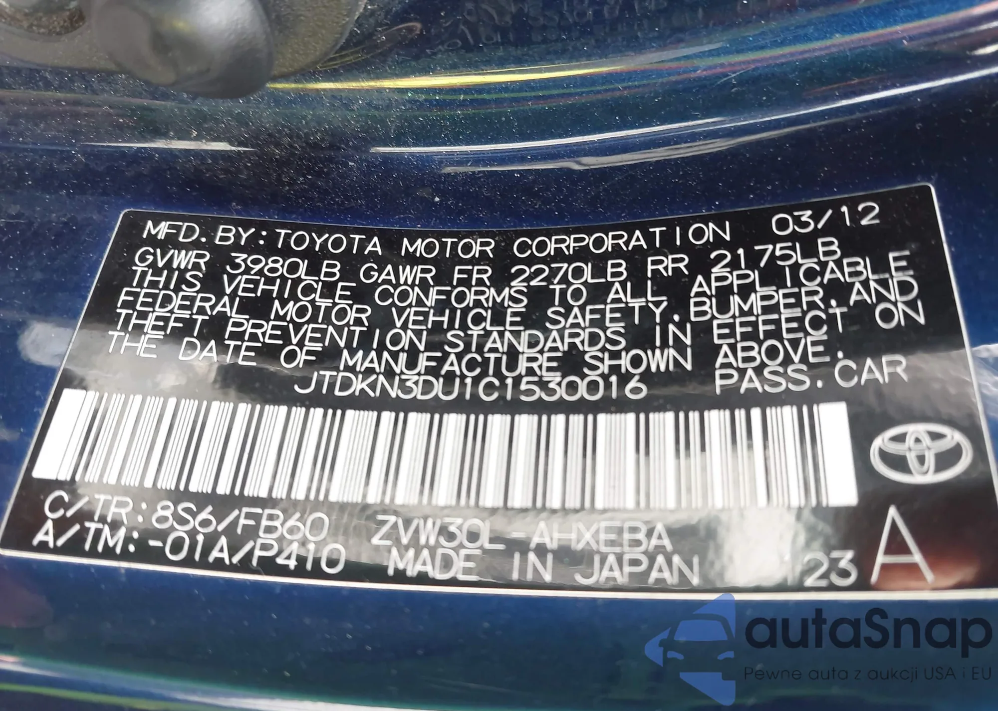 VIN: JTDKN3DU1C1530016