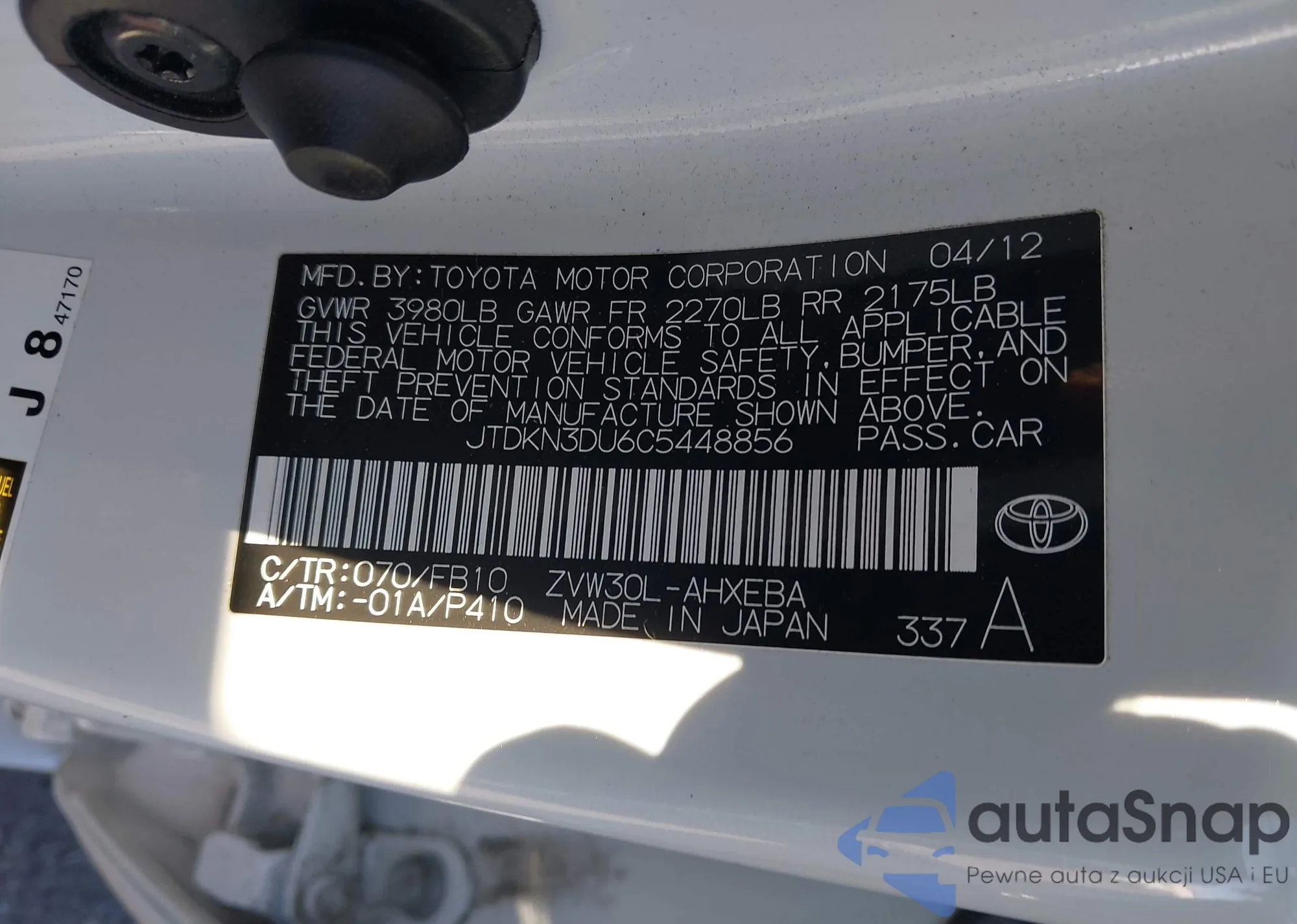• VIN: JTDKN3DU6C5448856