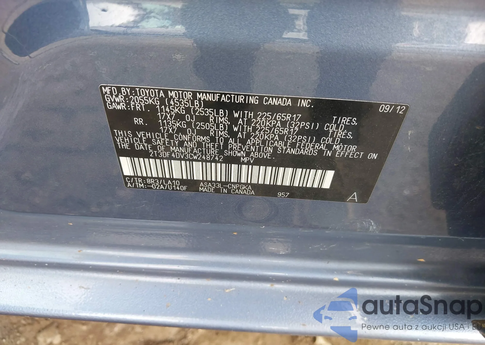 VIN: 2T3DF4DV3CW248742