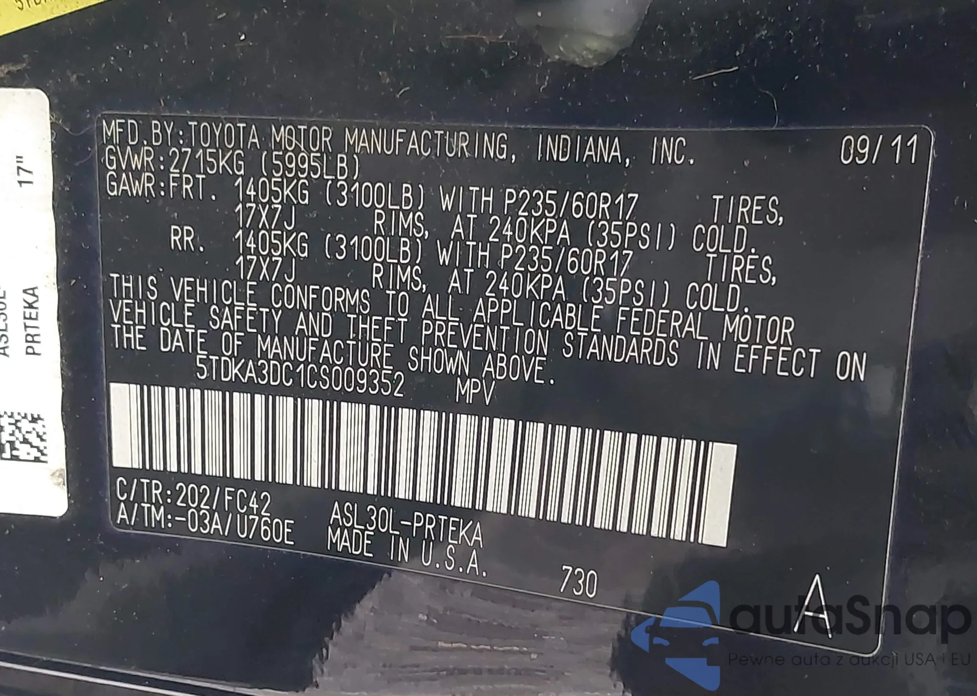 VIN: 5TDKA3DC1CS009352