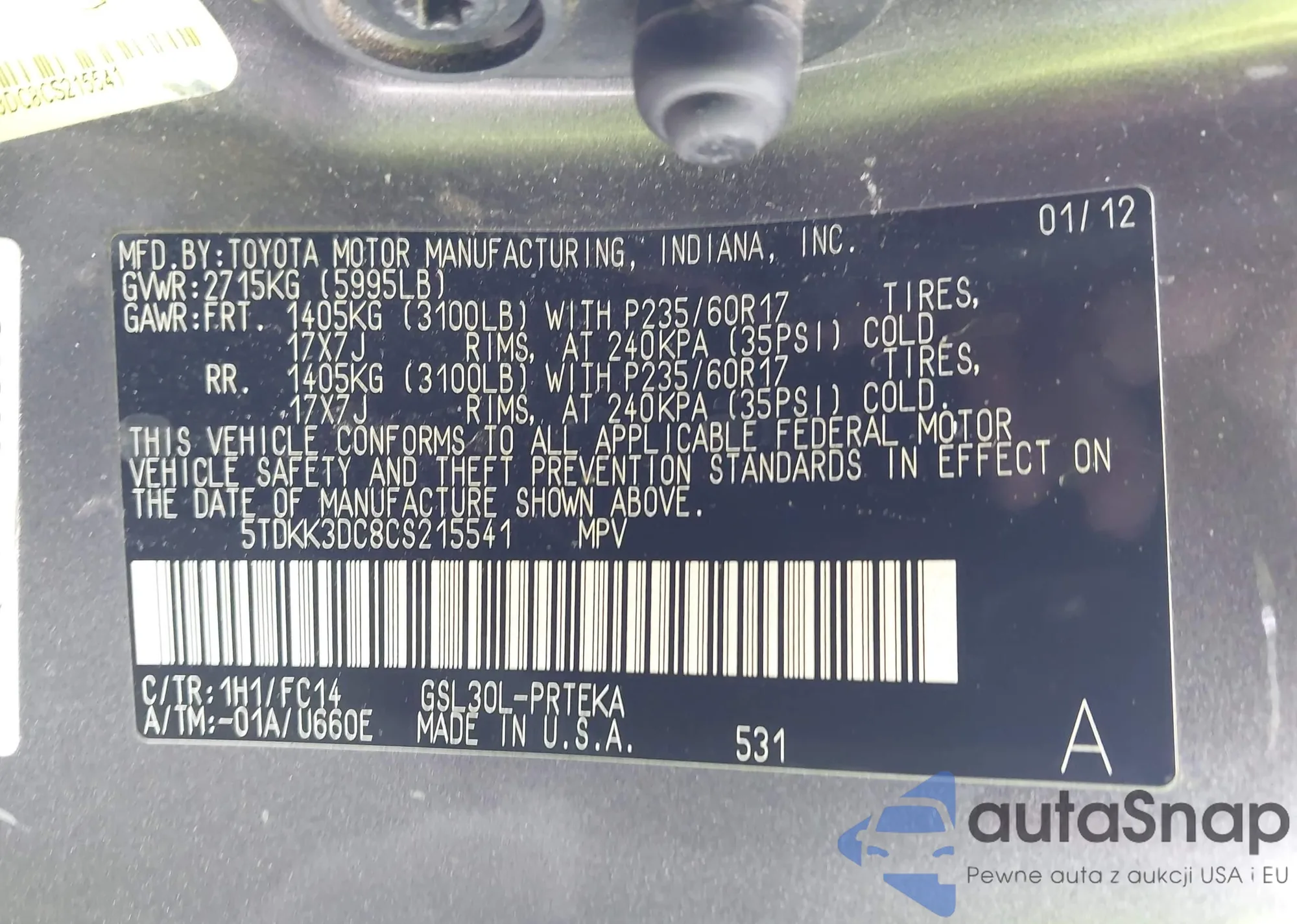 VIN: 5TDKK3DC8CS215541