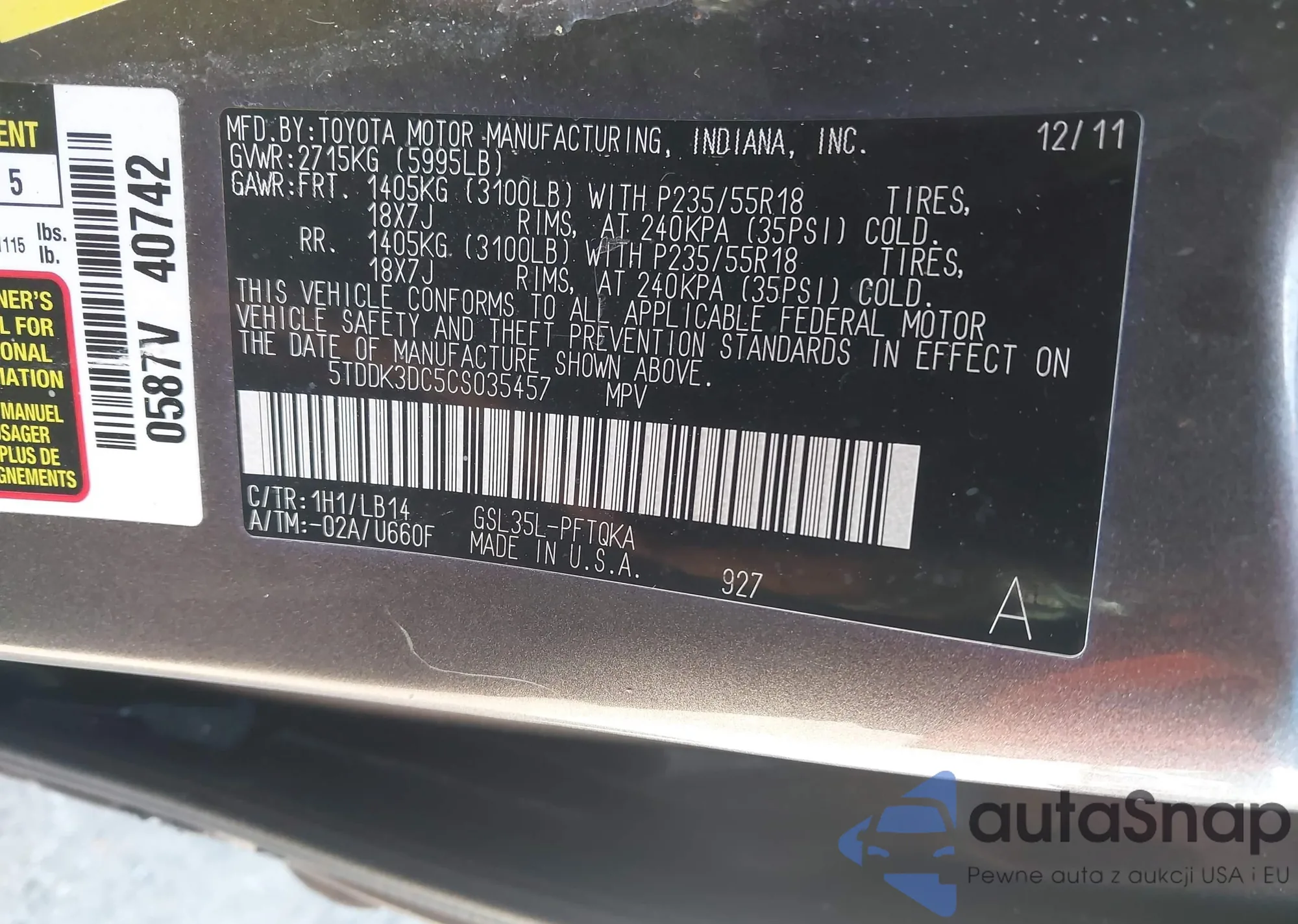 VIN: 5TDDK3DC5CS035457
