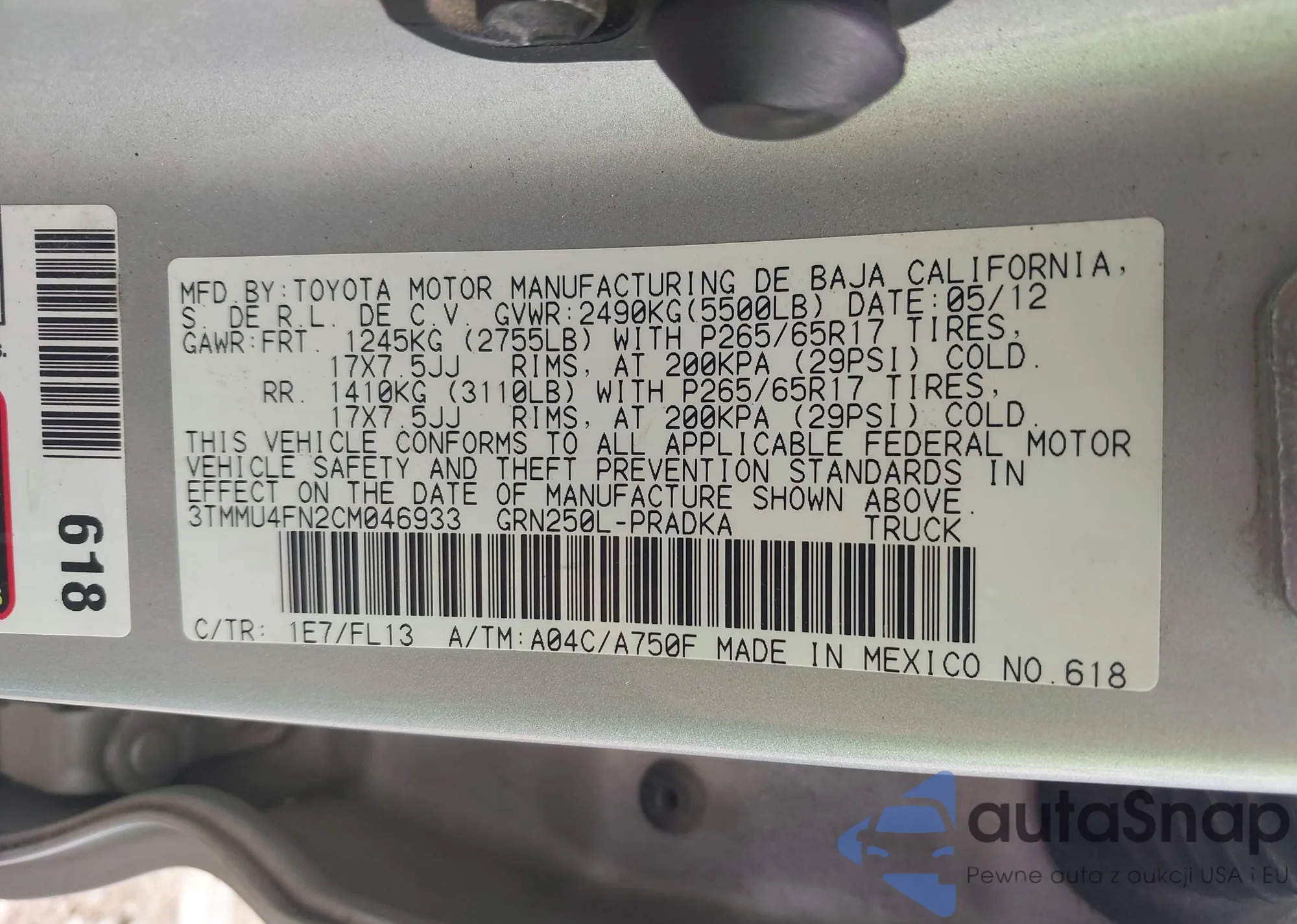 VIN: 3TMMU4FN2CM046933