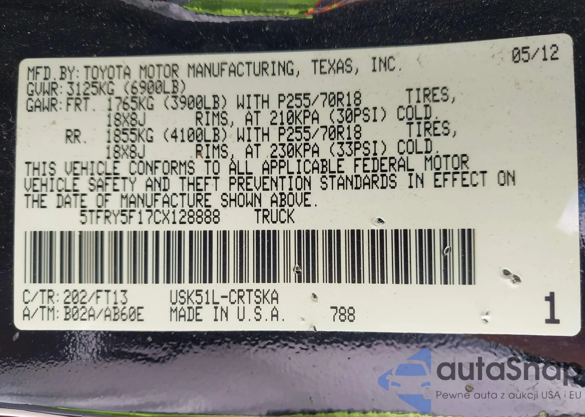 VIN: 5TFRY5F17CX128888