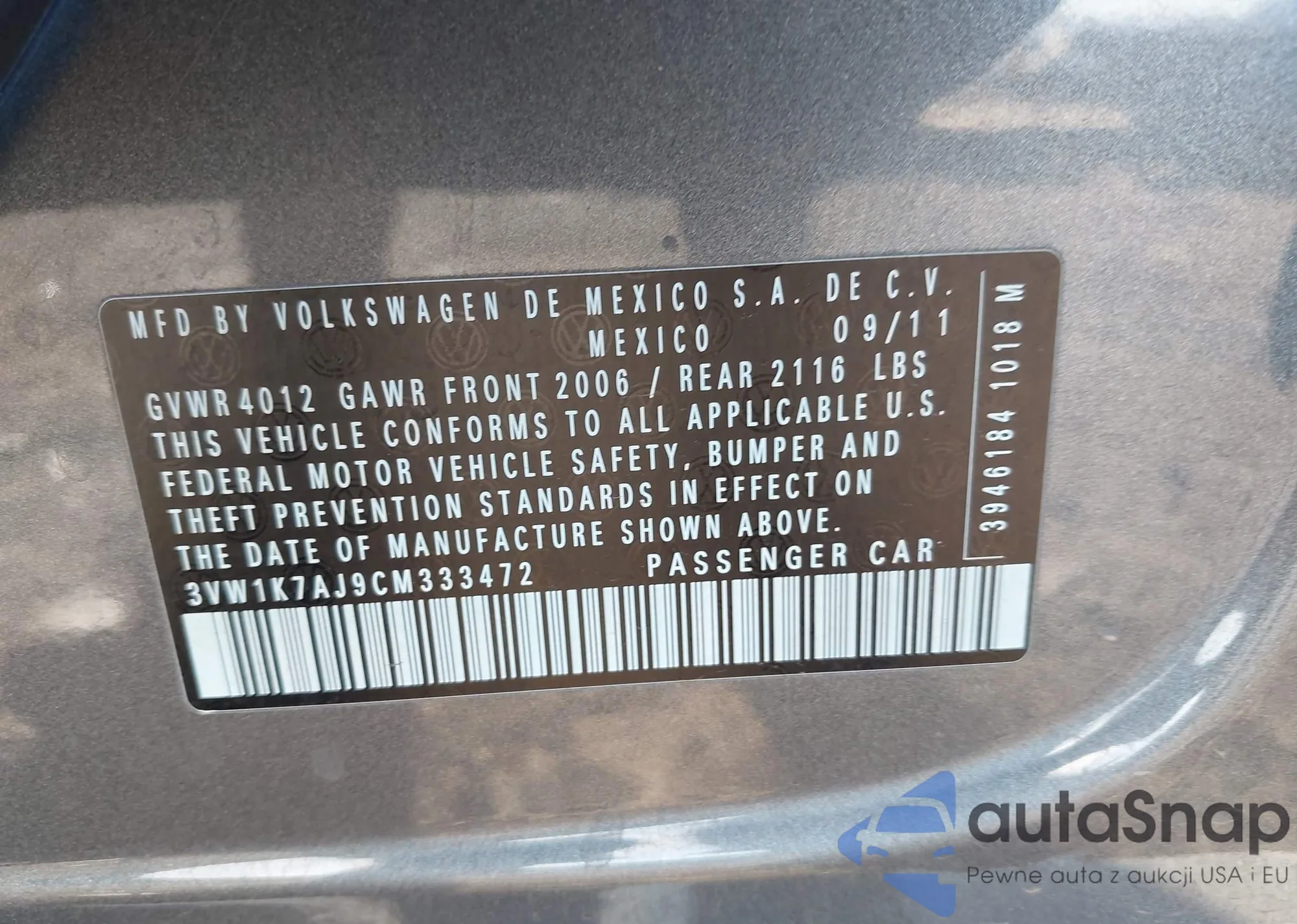VIN: 3VW1K7AJ9CM333472