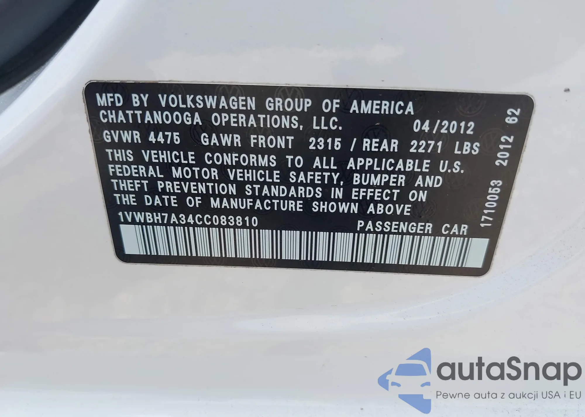 VIN: 1VWBH7A34CC083810