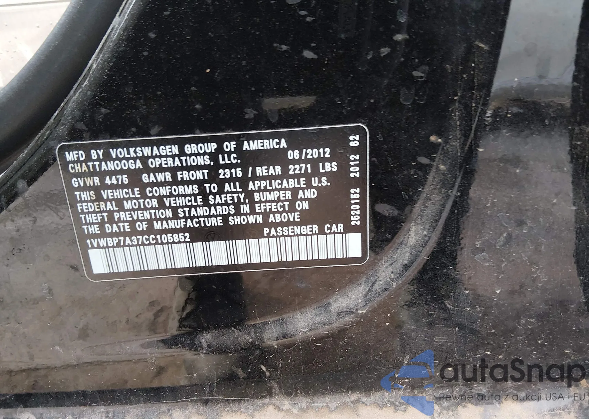 VIN: 1VWBP7A37CC105852