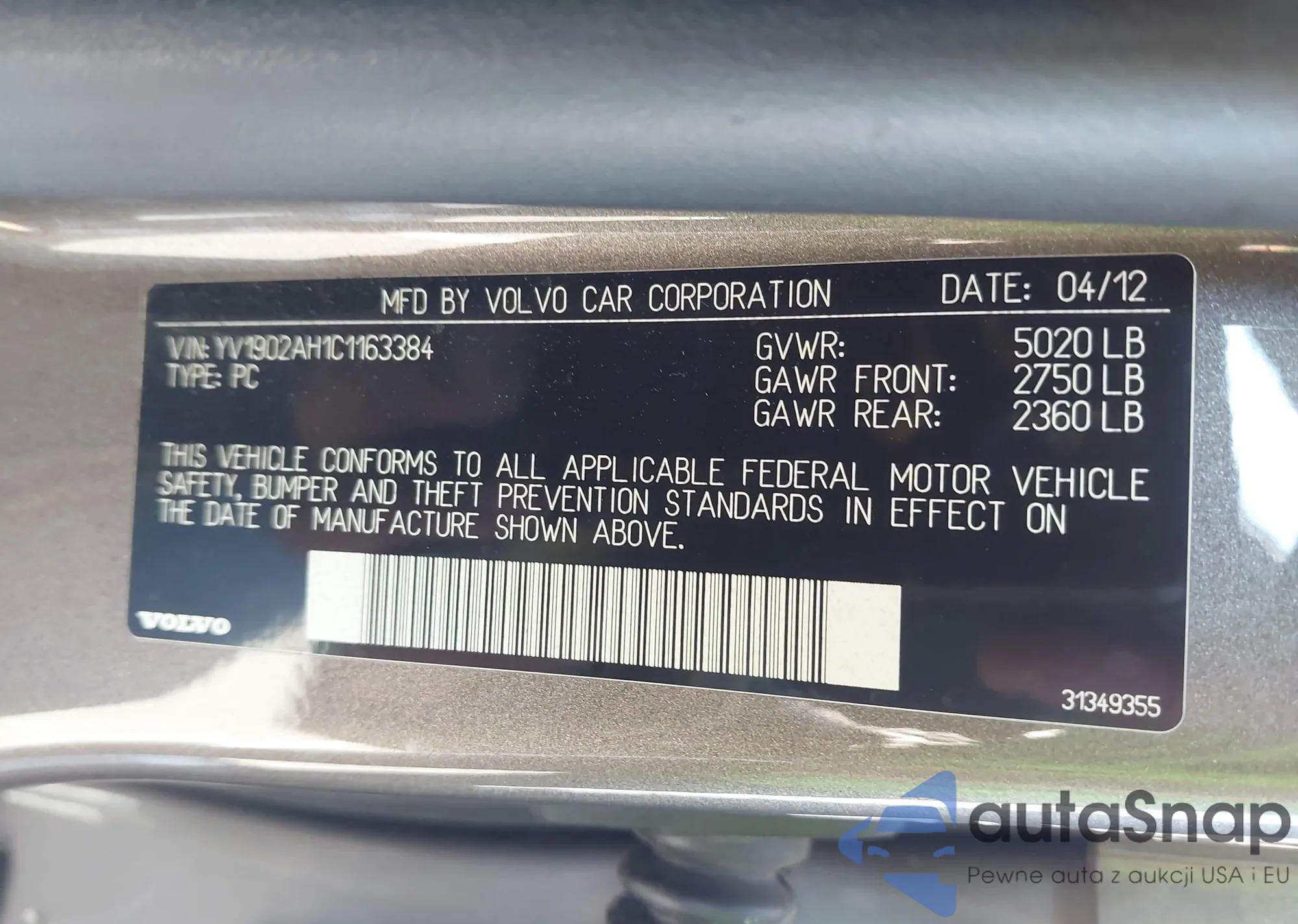 VIN: YV1902AH1C1163384