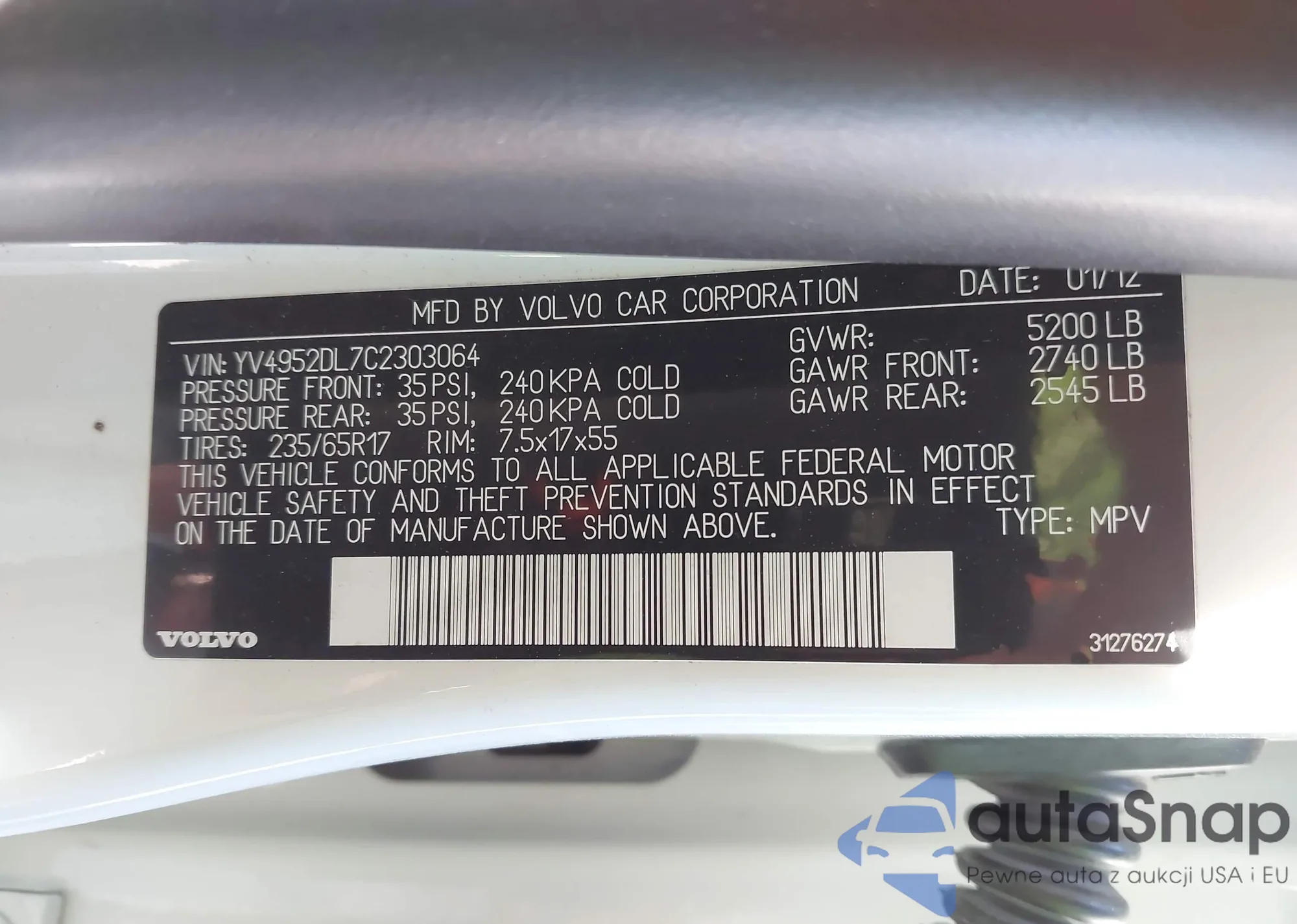 VIN: YV4952DL7C2303064