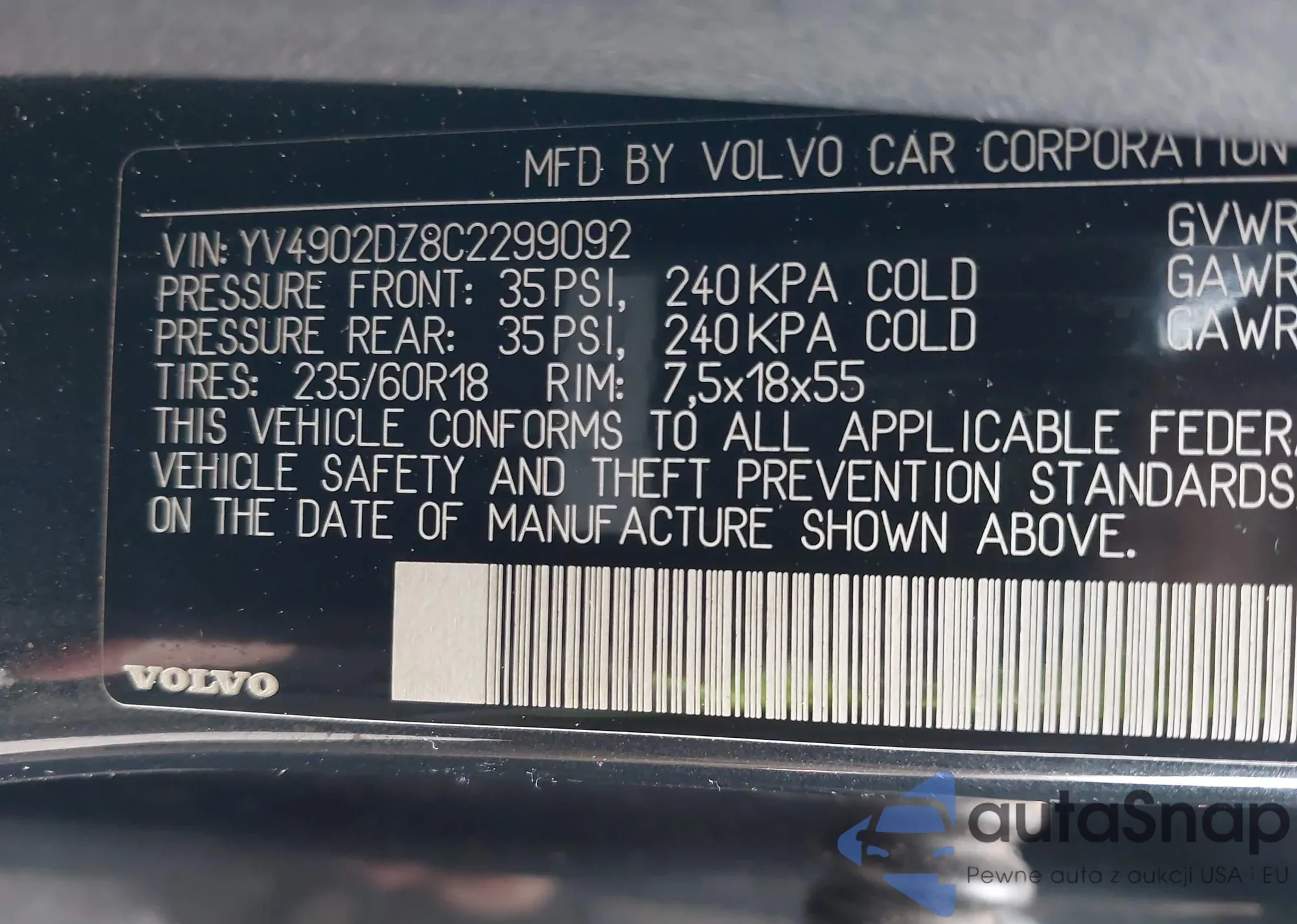 VIN: YV4902DZ8C2299092