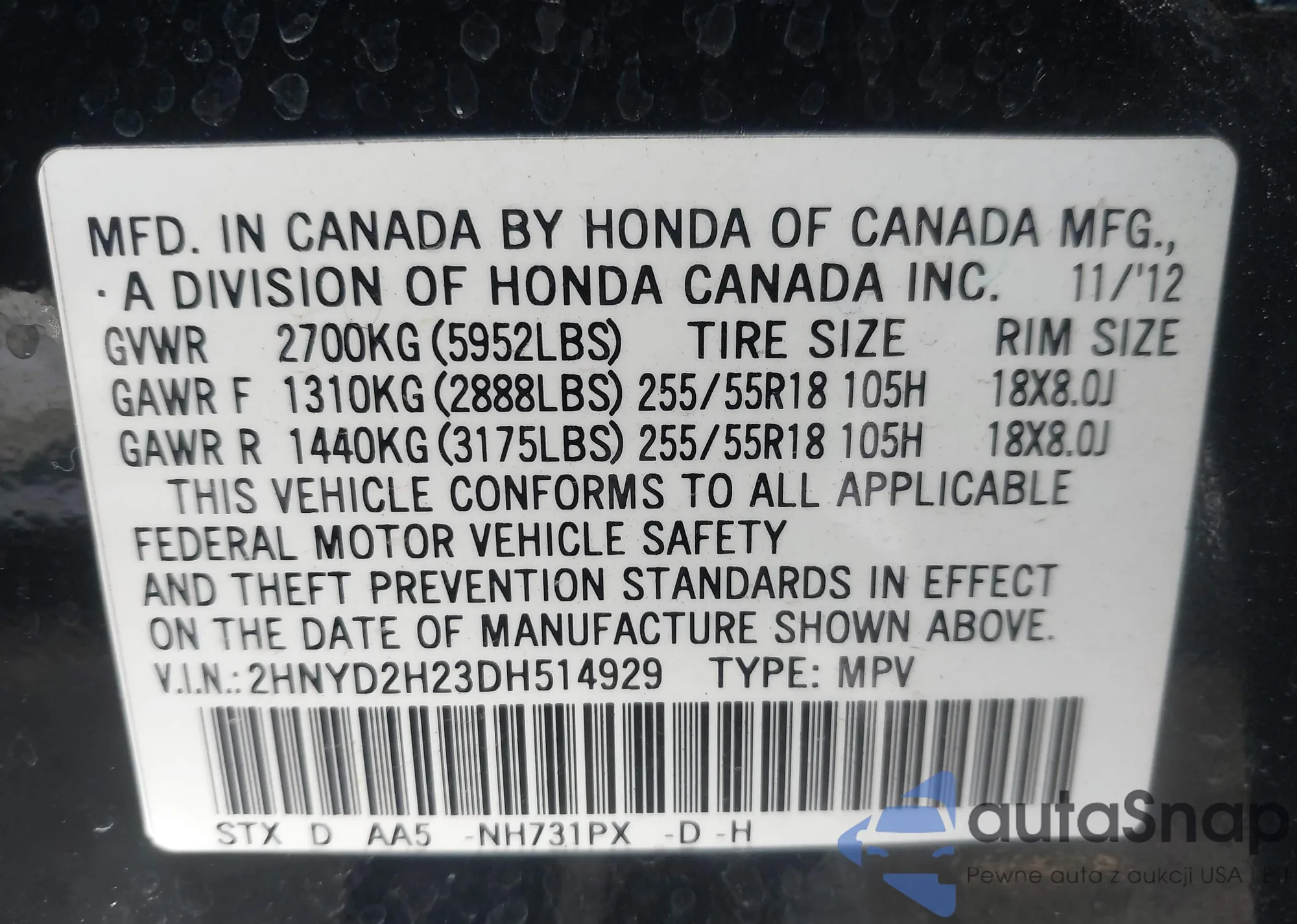 Samochód Acura MDX 2013 (VIN 2HNYD2H23DH514929) nie był wcześniej licytowany. Dokumenty są czyste, przebieg odpowiada lub jest niższy niż średnia rynku. Sprzedaje go firma ubezpieczeniowa – polecamy zakup. Dostawa do portu zajmie ok. 6–8 tygodni.