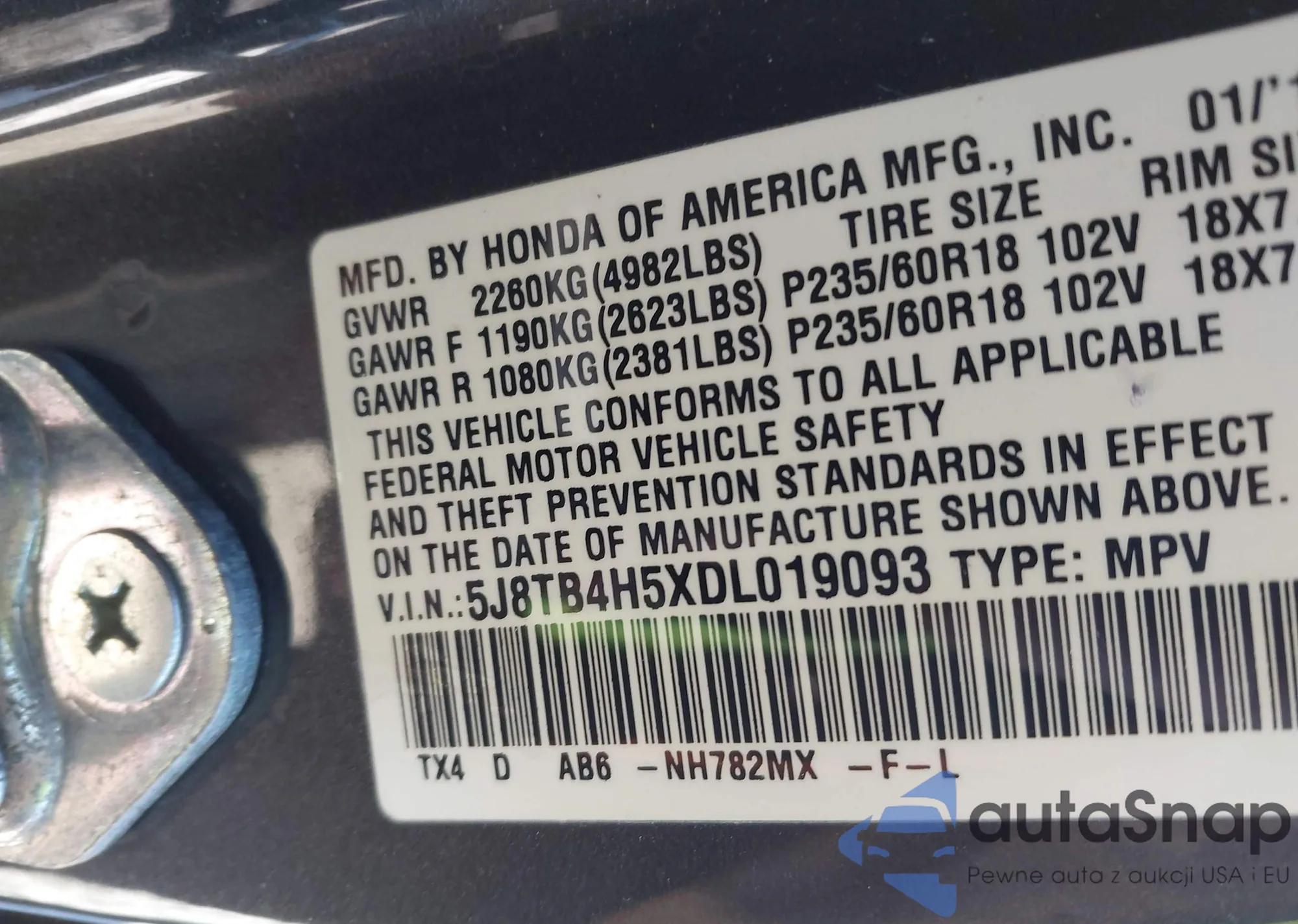 VIN: 5J8TB4H5XDL019093