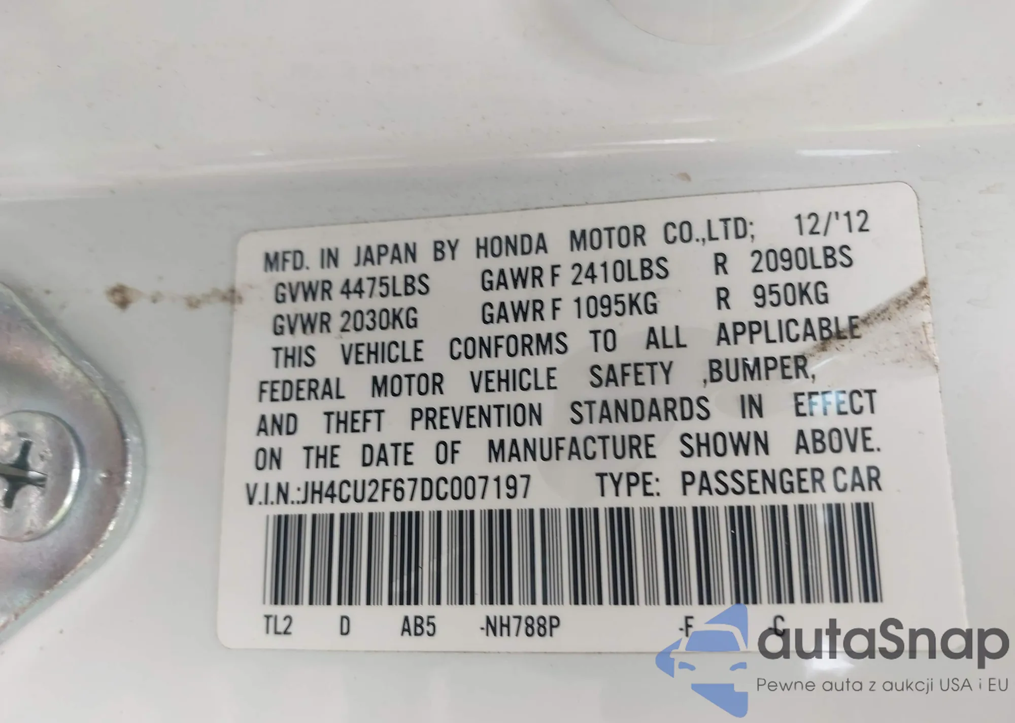 VIN: JH4CU2F67DC007197