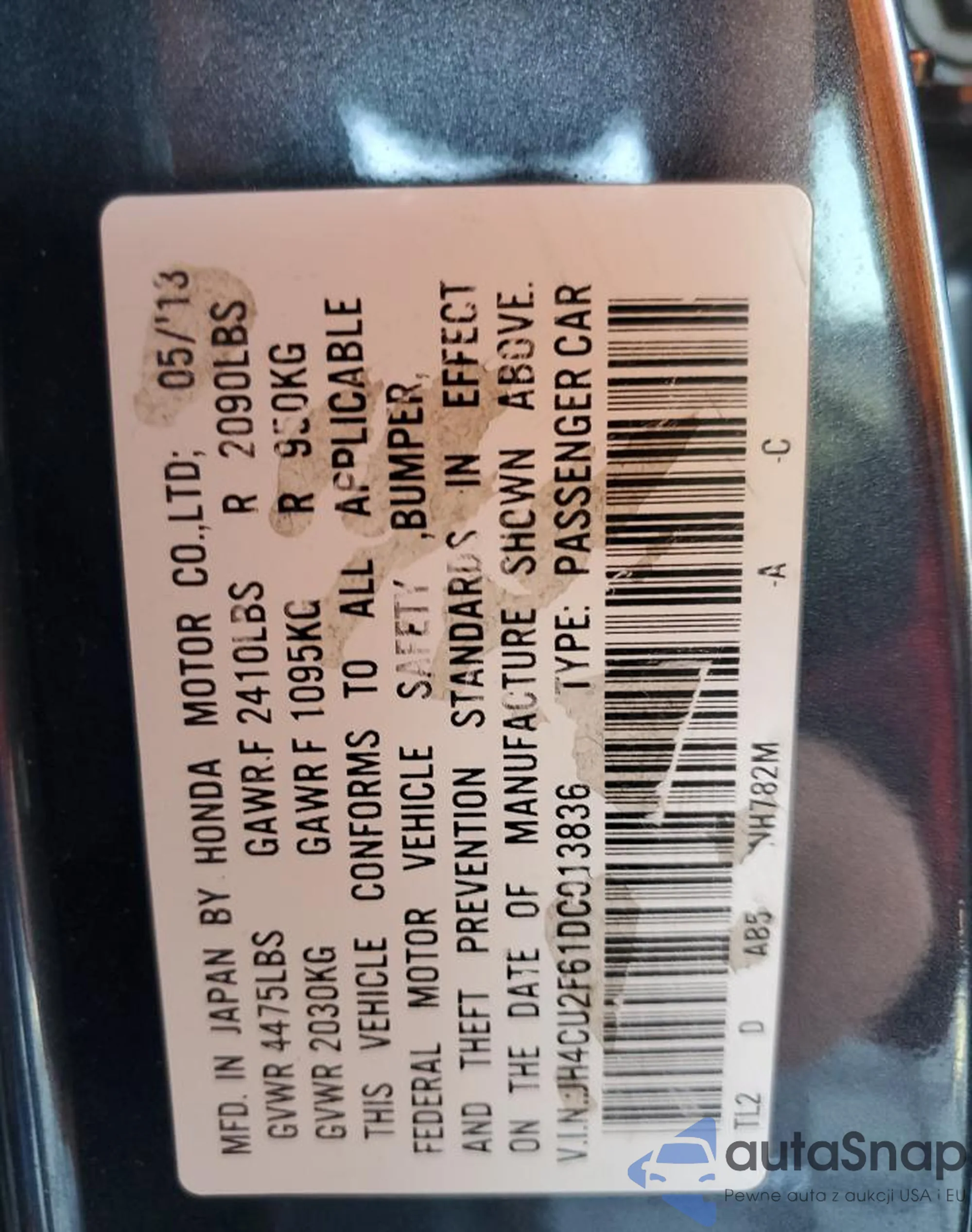 VIN: JH4CU2F61DC013836