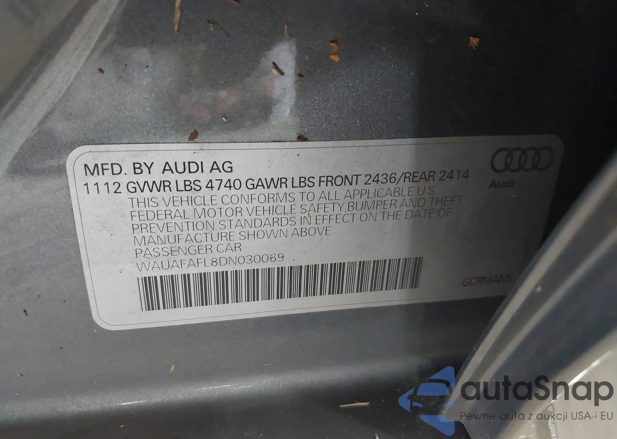 VIN: WAUAFAFL8DN030069