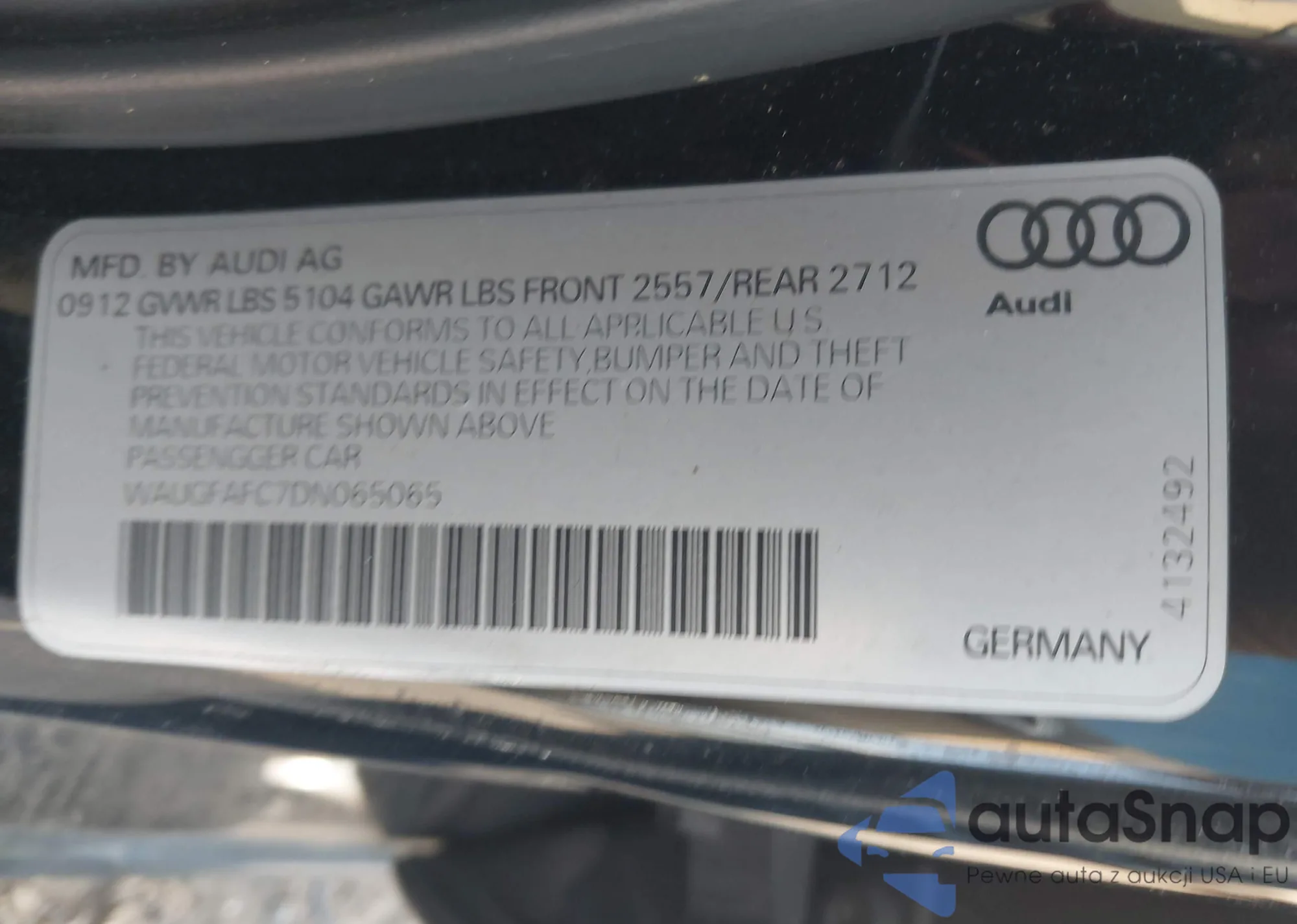 • VIN: WAUGFAFC7DN065065