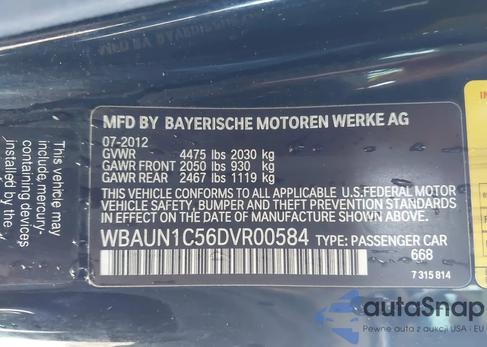 • VIN: WBAUN1C56DVR00584