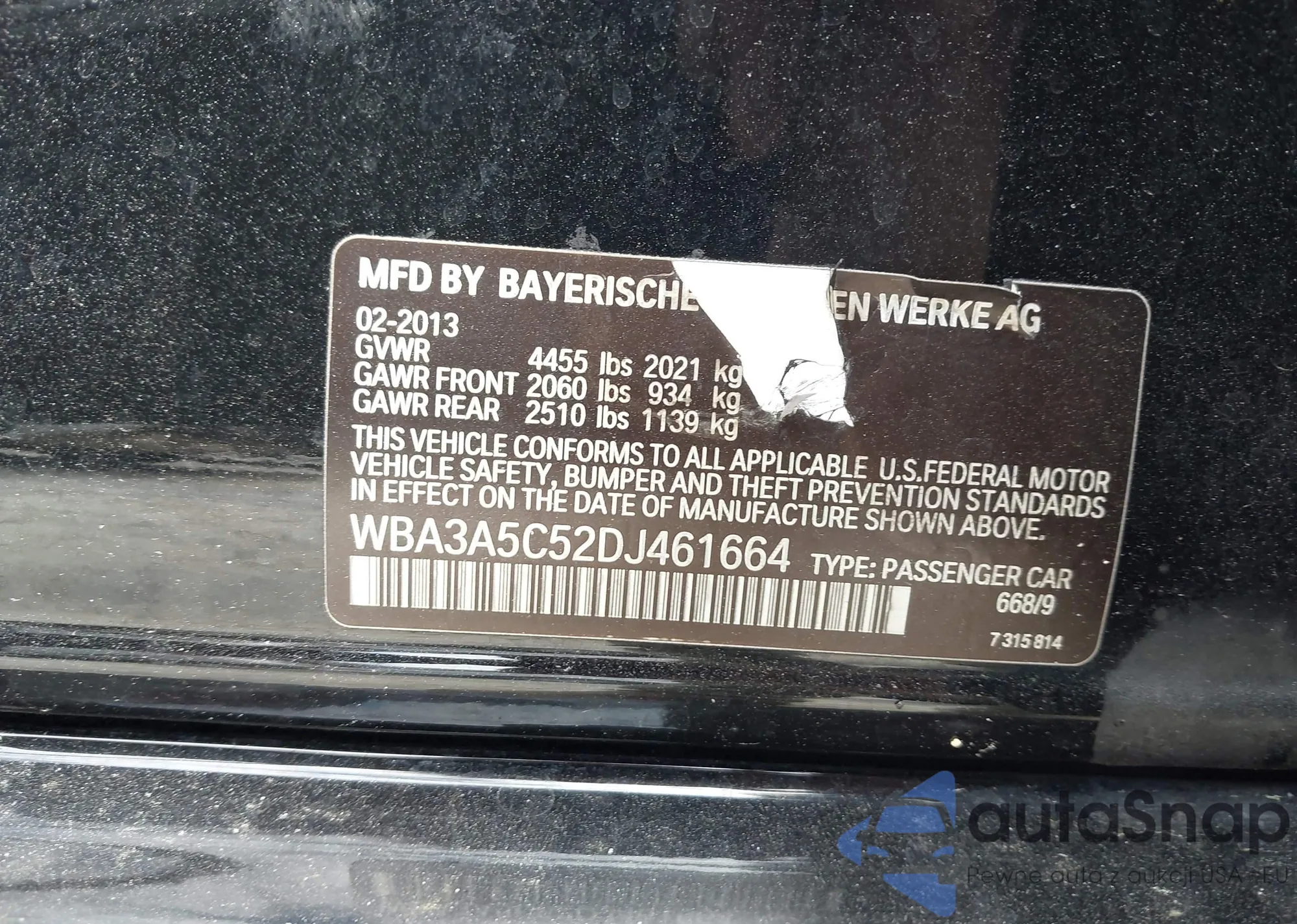 VIN: WBA3A5C52DJ461664