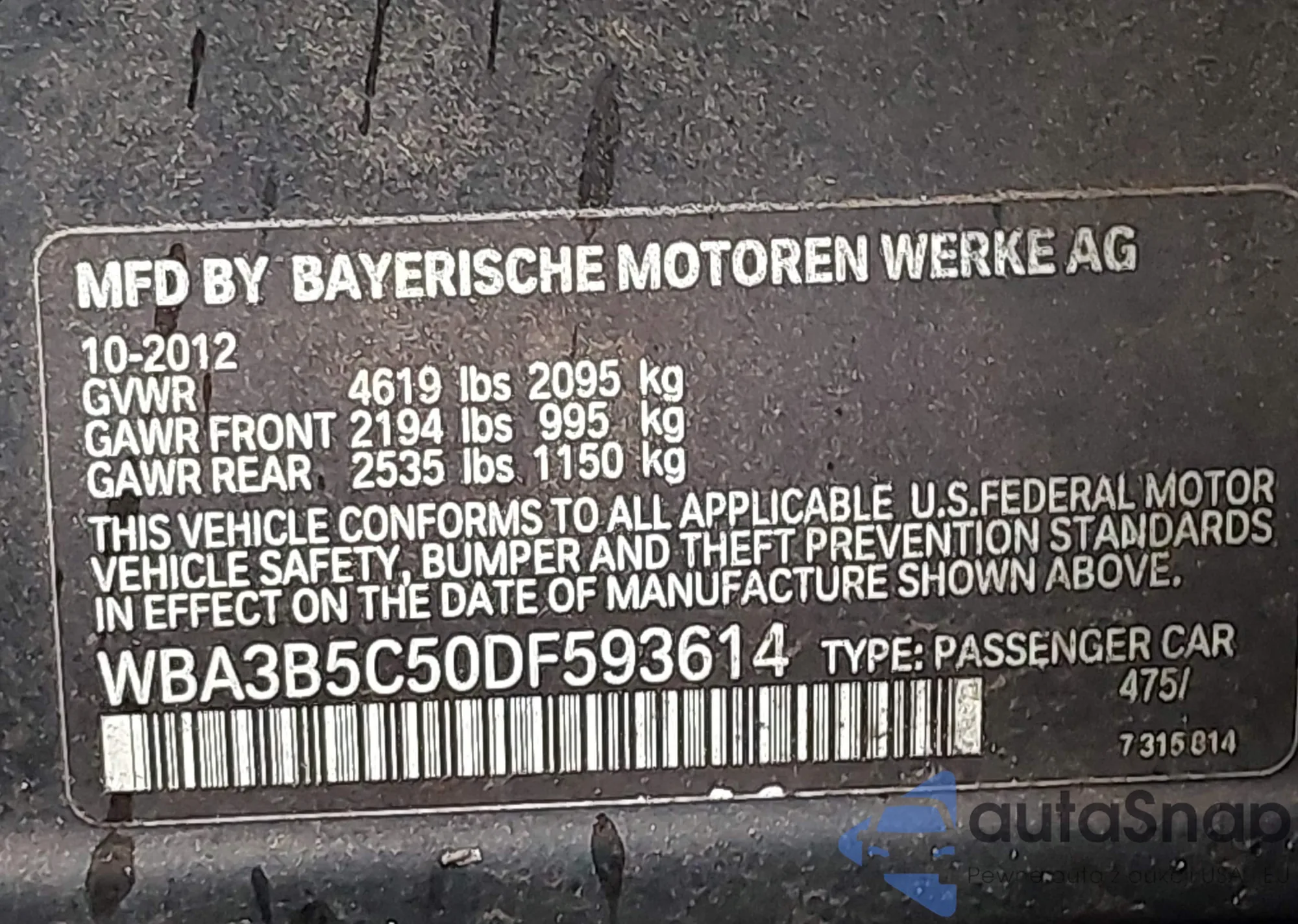 VIN: WBA3B5C50DF593614