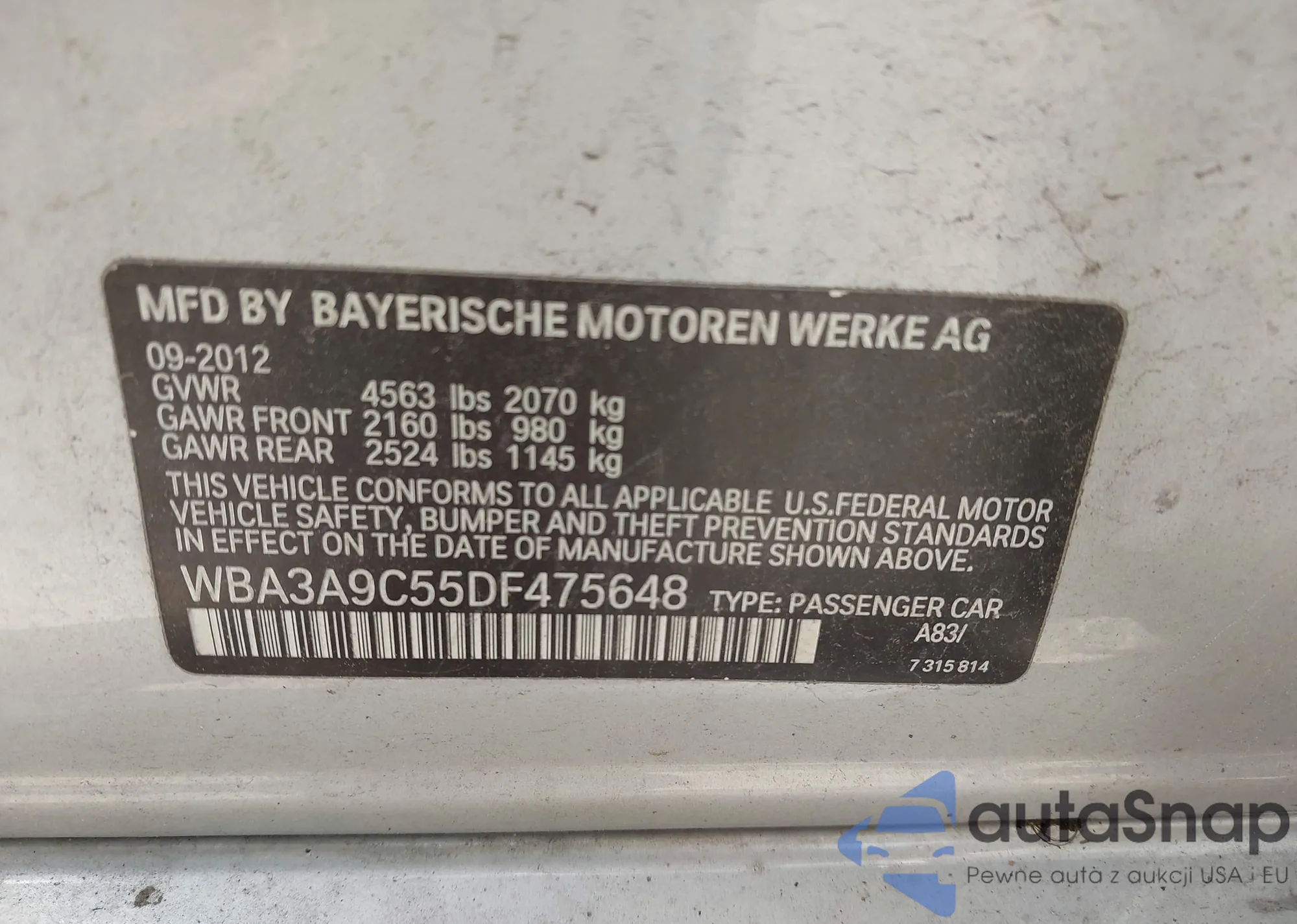 VIN: WBA3A9C55DF475648