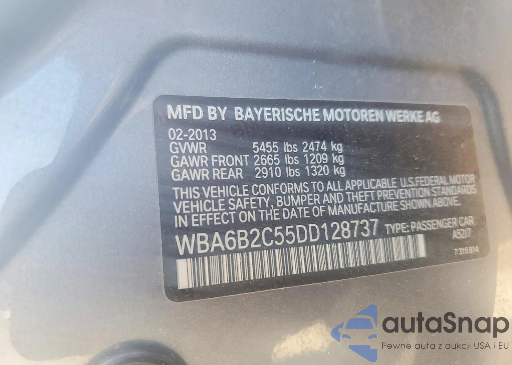 Samochód BMW 6er 2013 (VIN WBA6B2C55DD128737) był już licytowany 1 razy i/lub sprzedaje go niezweryfikowany sprzedawca. Zalecamy raport Carfax i potwierdzenie możliwości rejestracji pojazdu przed zakupem.