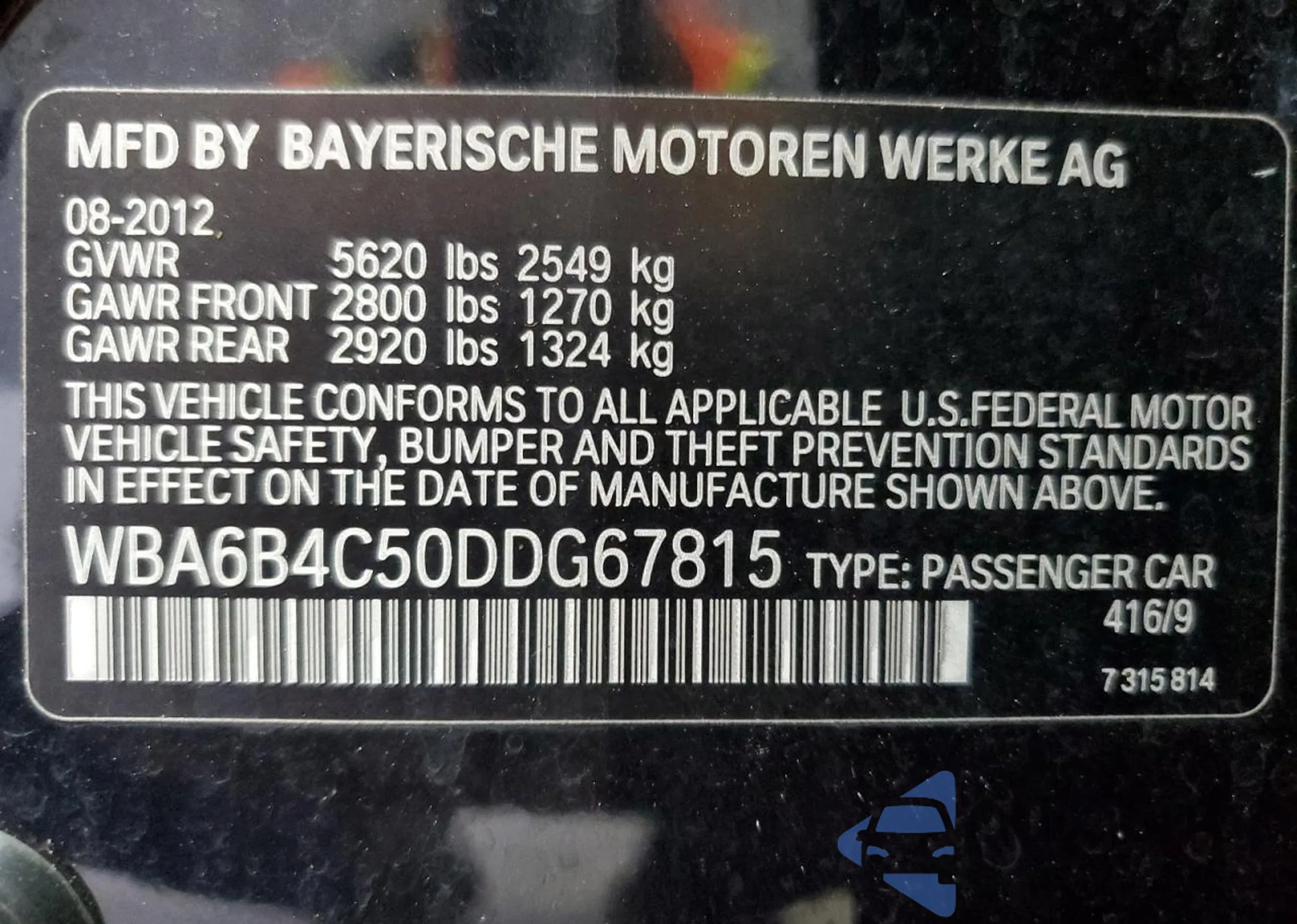 VIN: WBA6B4C50DDG67815