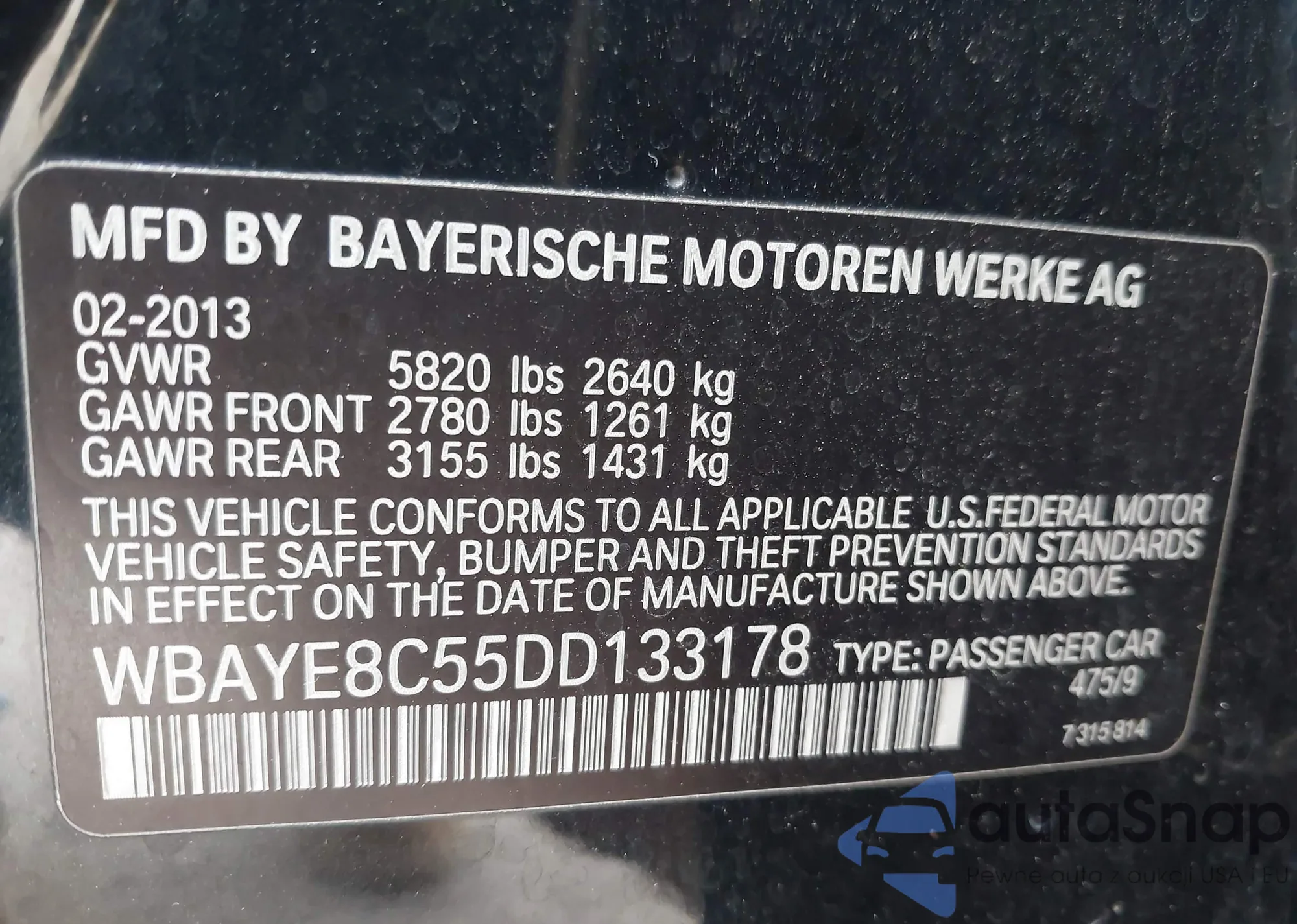 VIN: WBAYE8C55DD133178