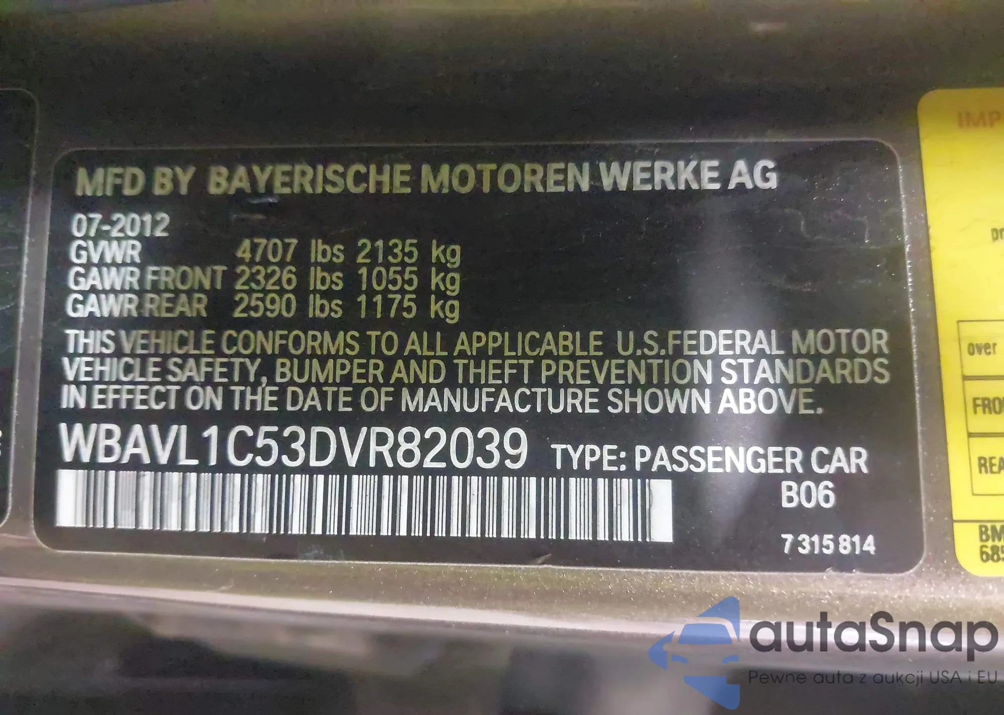 VIN: WBAVL1C53DVR82039