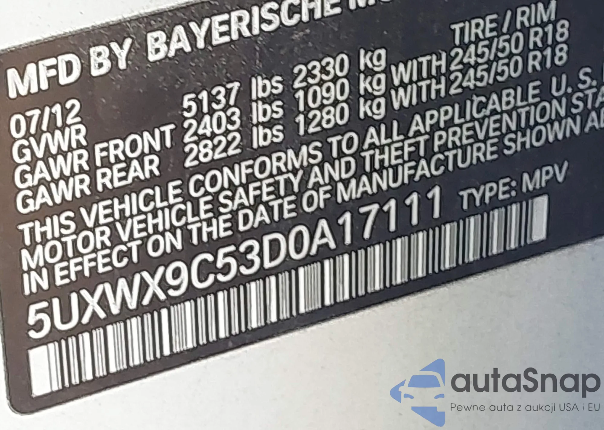 VIN: 5UXWX9C53D0A17111