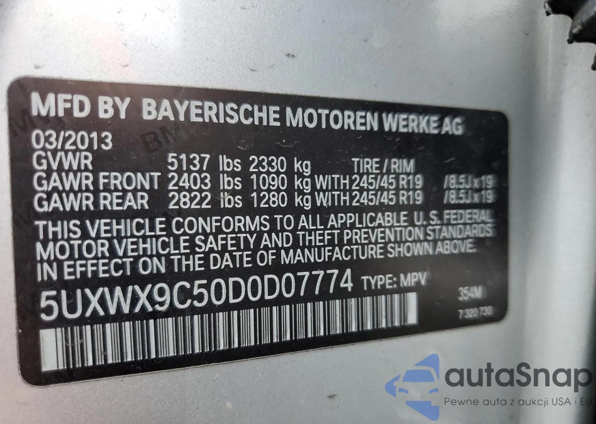 VIN: 5UXWX9C50D0D07774