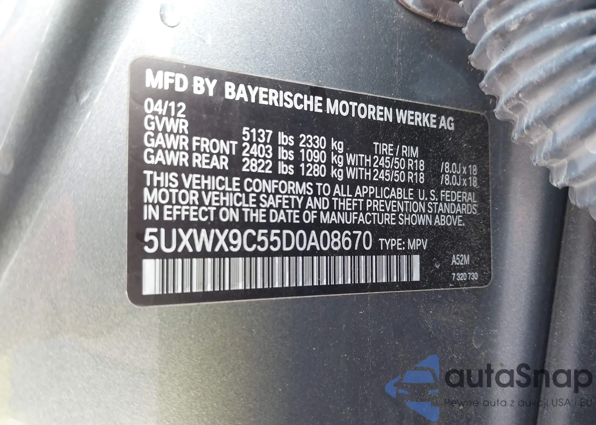 • VIN: 5UXWX9C55D0A08670