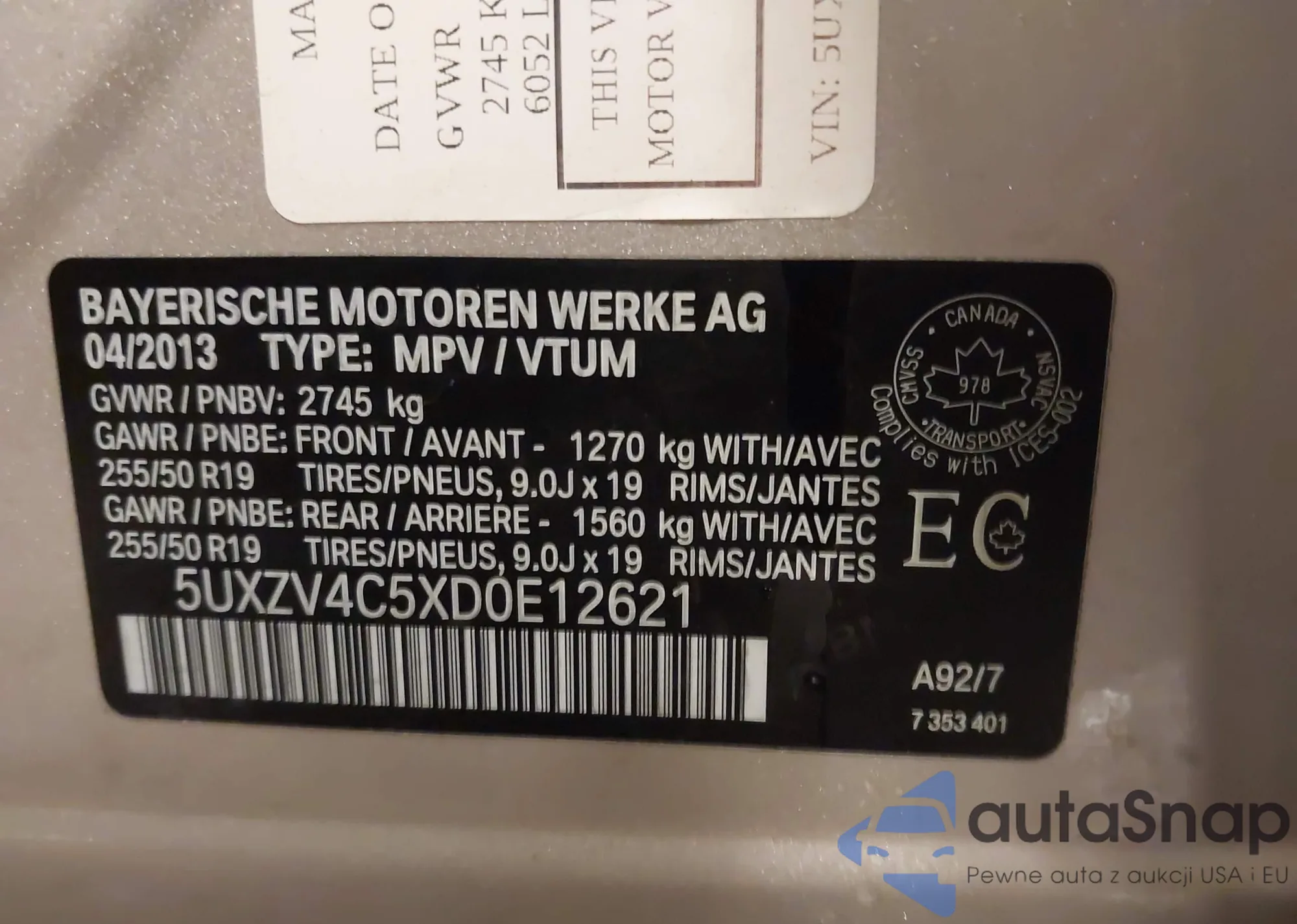 Samochód BMW X5 2013 (VIN 5UXZV4C5XD0E12621) nie był wcześniej licytowany. Dokumenty są czyste, przebieg odpowiada lub jest niższy niż średnia rynku. Sprzedaje go firma ubezpieczeniowa – polecamy zakup. Dostawa do portu zajmie ok. 6–8 tygodni.