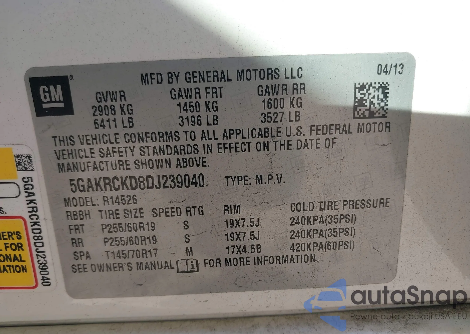 VIN: 5GAKRCKD8DJ239040