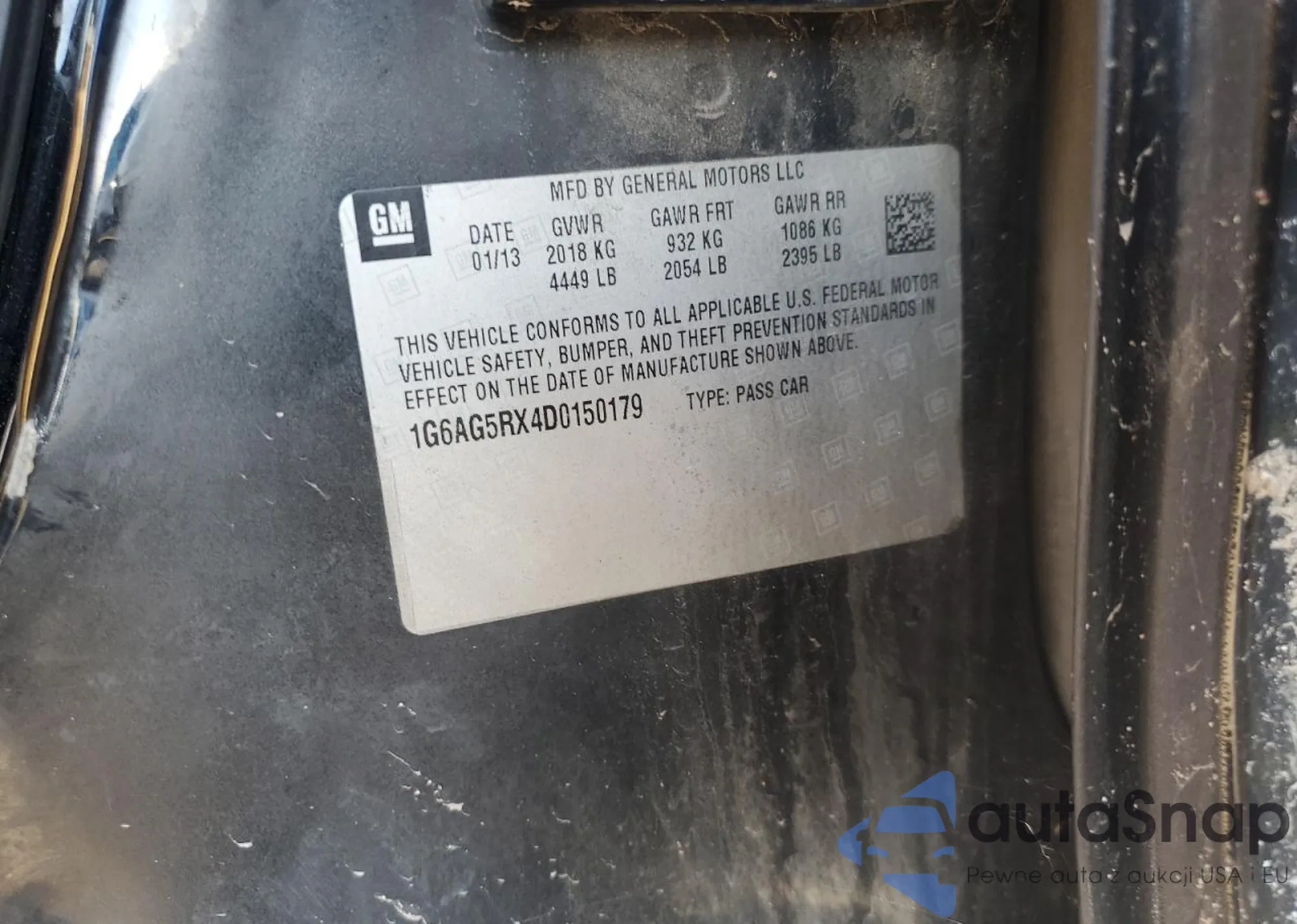 VIN: 1G6AG5RX4D0150179
